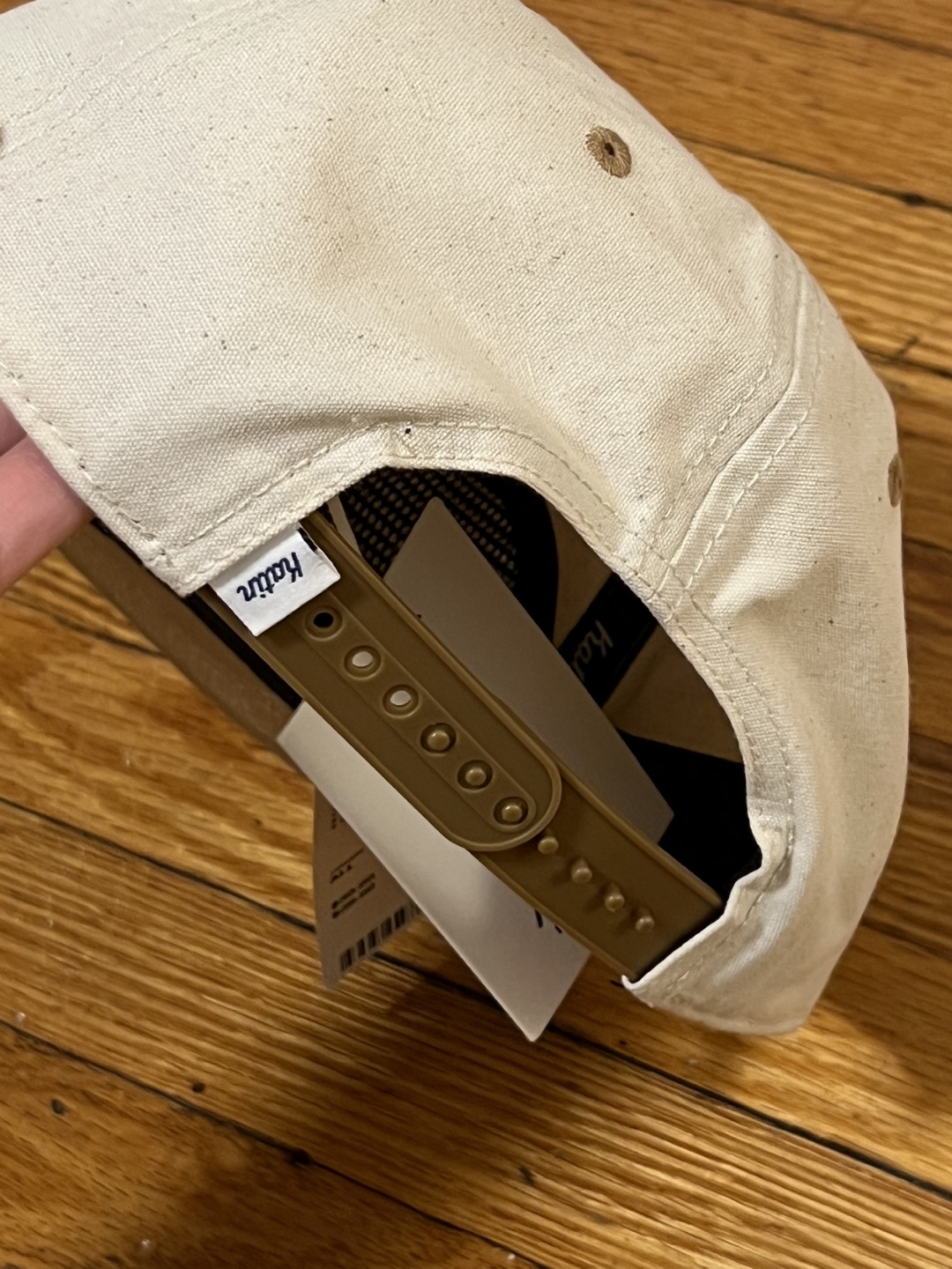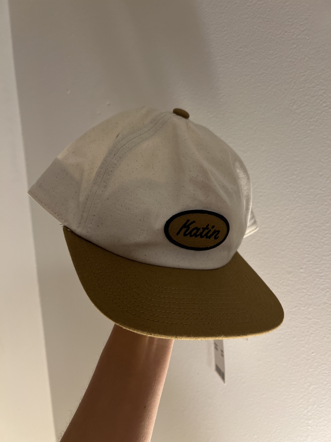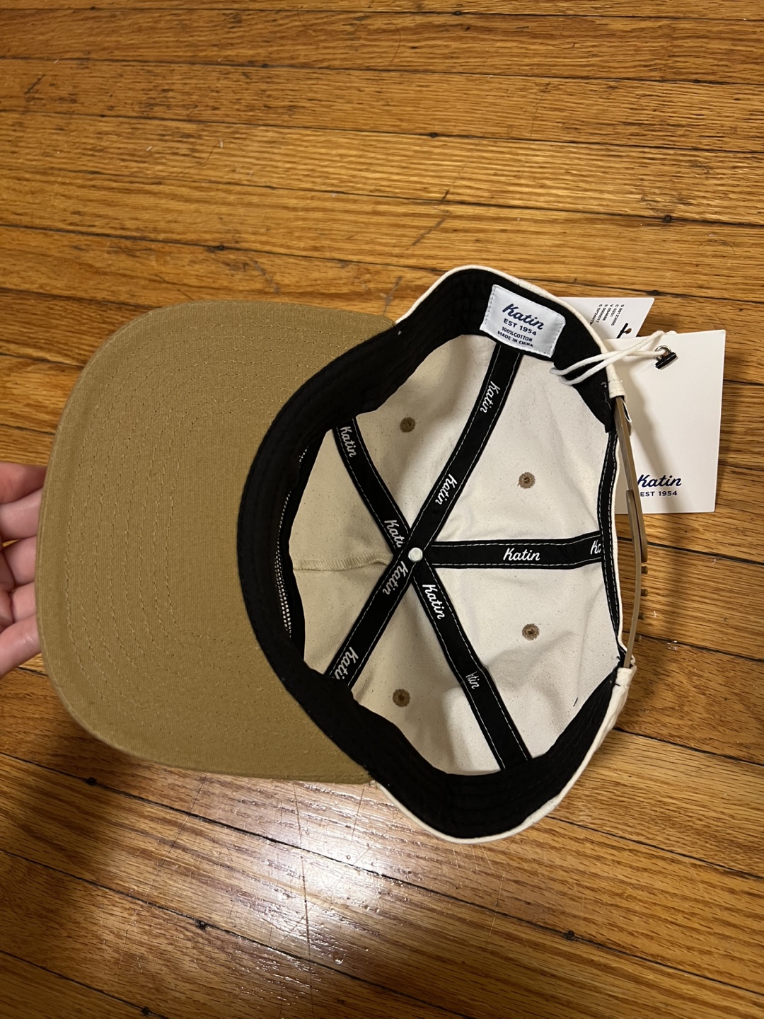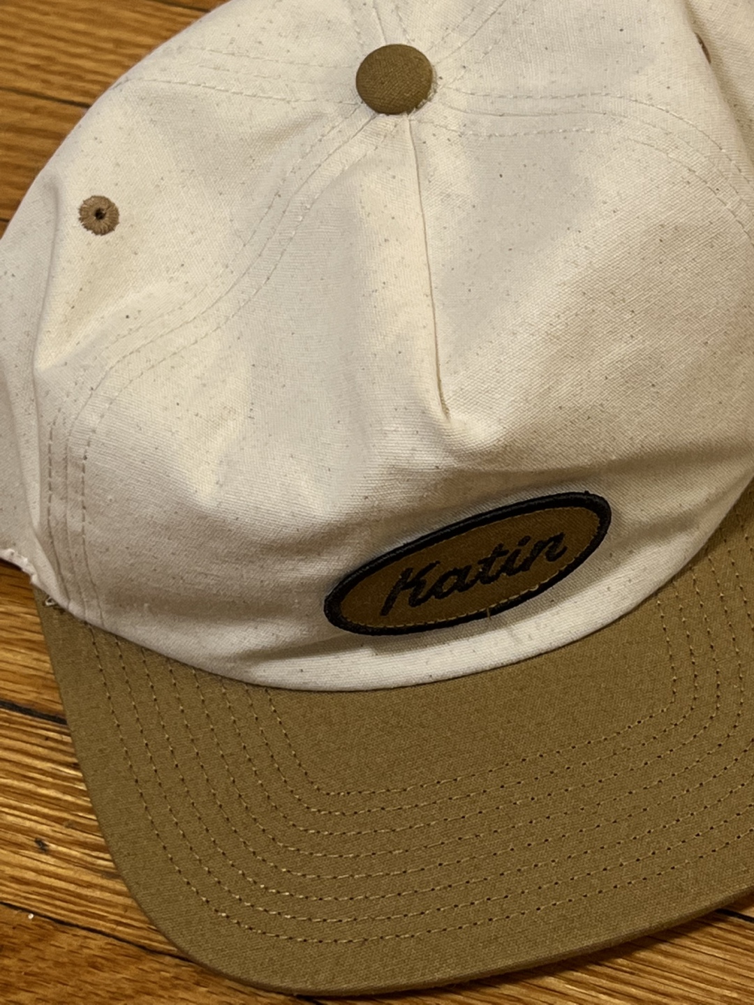 The Roadside Hat is made from cotton canvas with a merrowed edge embroidered Katin patch.
