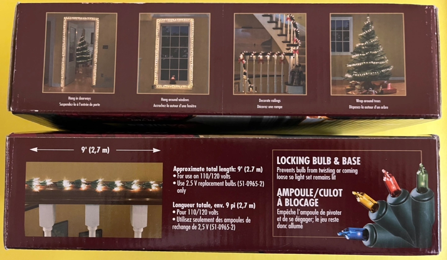 2 boxes of 200 multi colour mini lights, each 9 ft long (18 ft total).