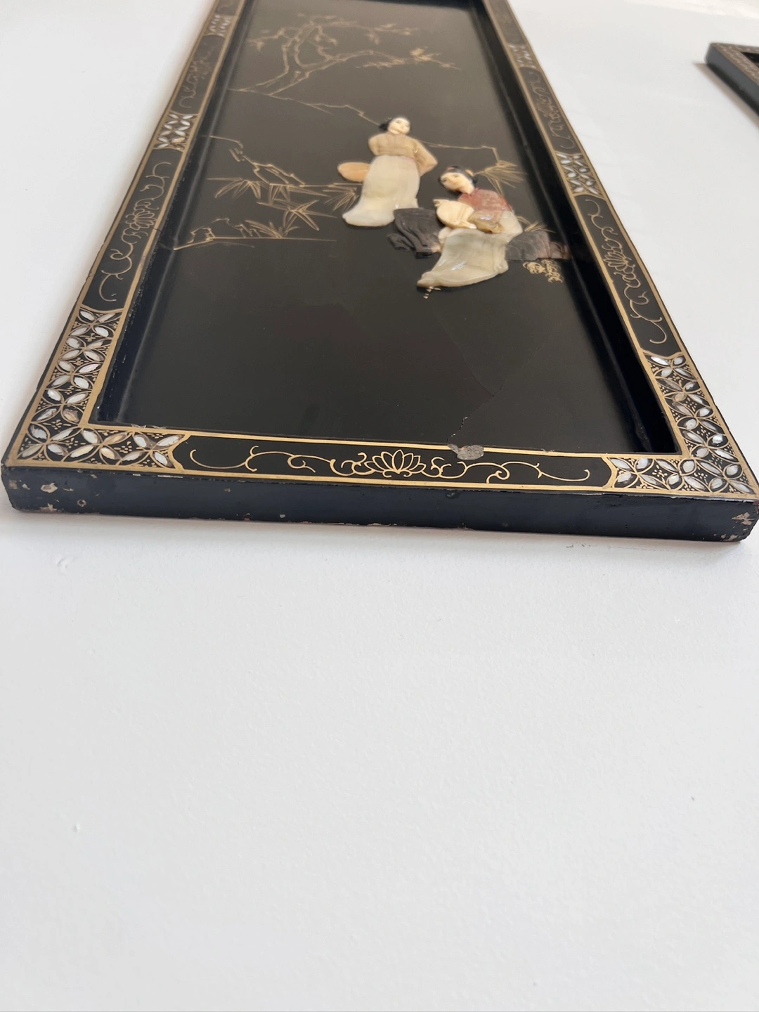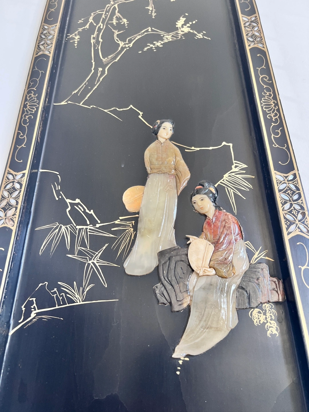 ⚡️RARE FIND⚡️ Vintage Black Lacquer & Jade Japanese Wall Art