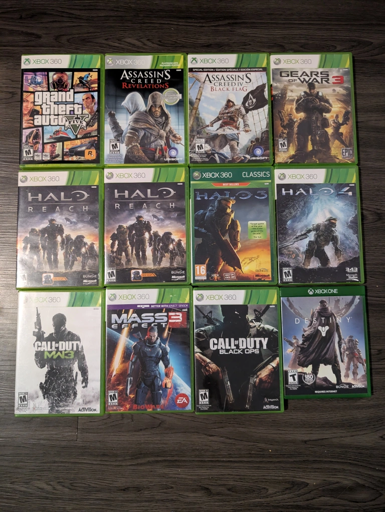 Various Xbox 360 games and one Xbox One game. 2 Xbox One controllers and one Xbox 360 controller. All lightly used and working.