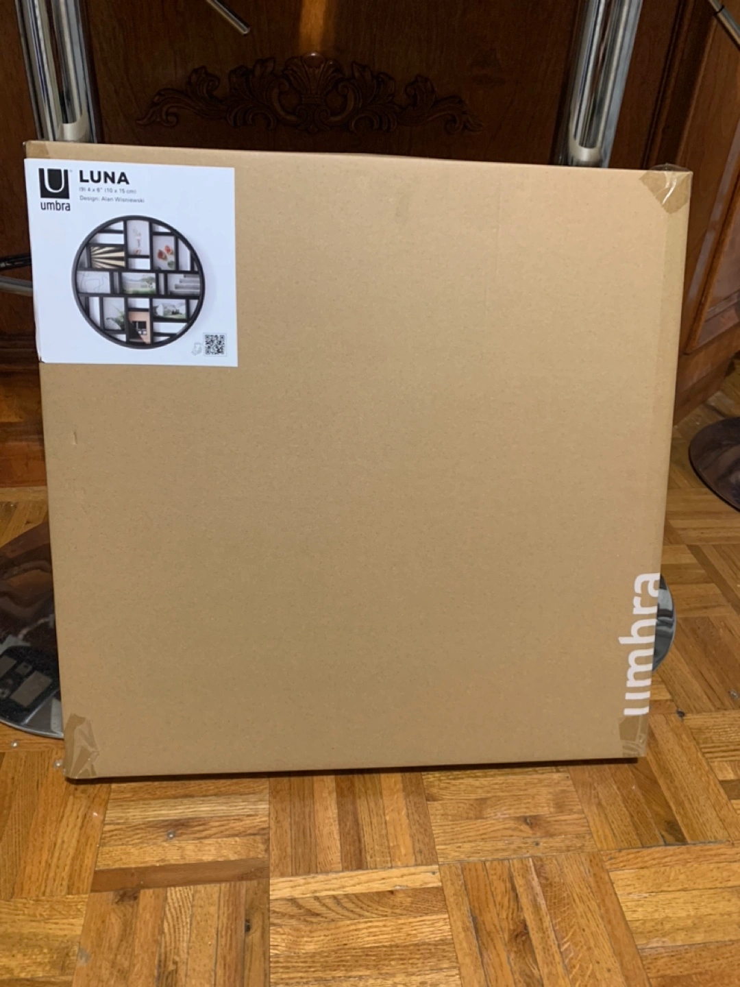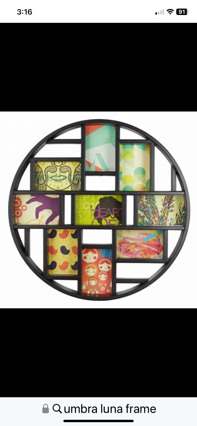 Black circular photo frame. Holds multiple 4x6 photos.brand new in box selling for $62 on Amazon asking $35