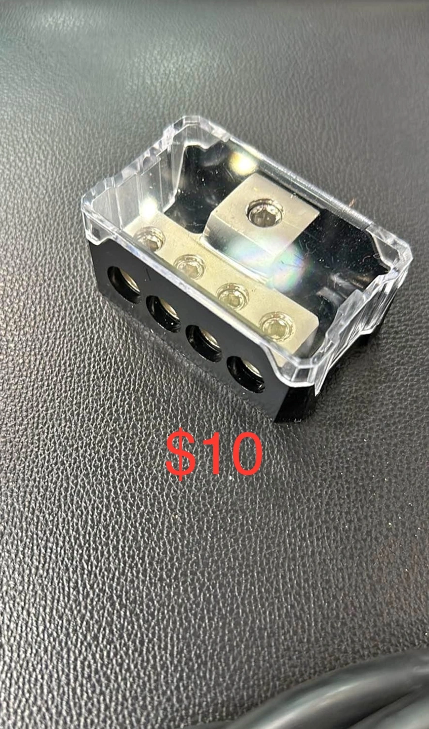 10Distributor block for your car Music, includes 4 terminals. Clear plastic cover. Good condition.