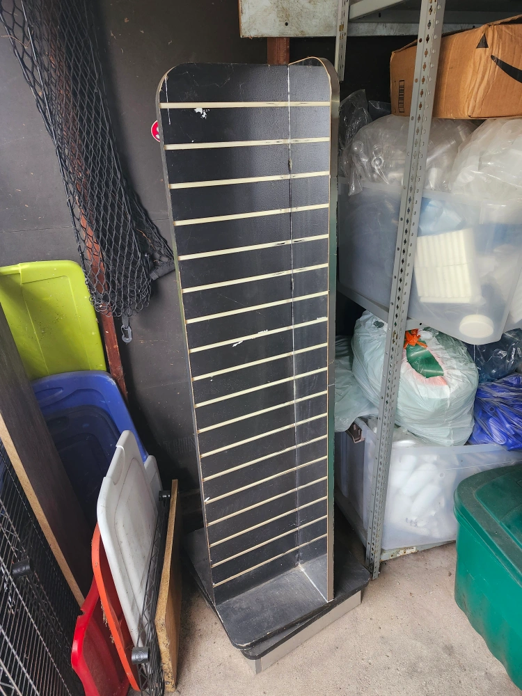 Get ready to elevate your retail display game with this stunning Rotating Slat Display featuring Mira! This versatile and eye-catching display is ideal for showcasing clothing, accessories, and other merchandise.