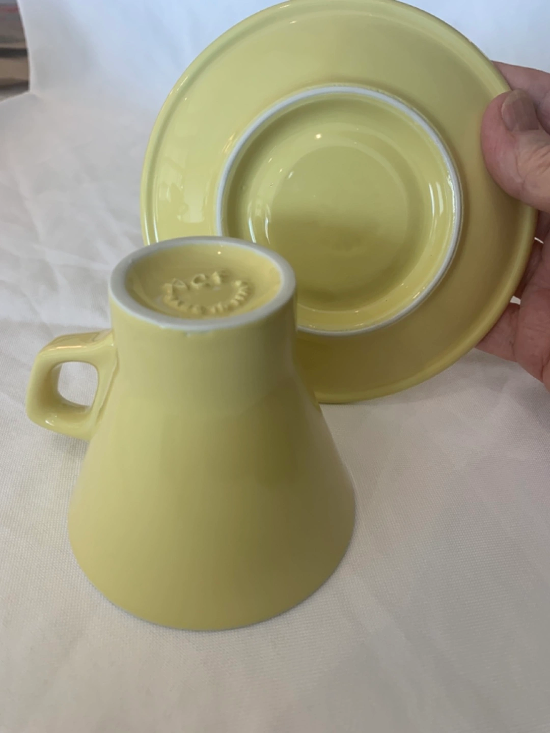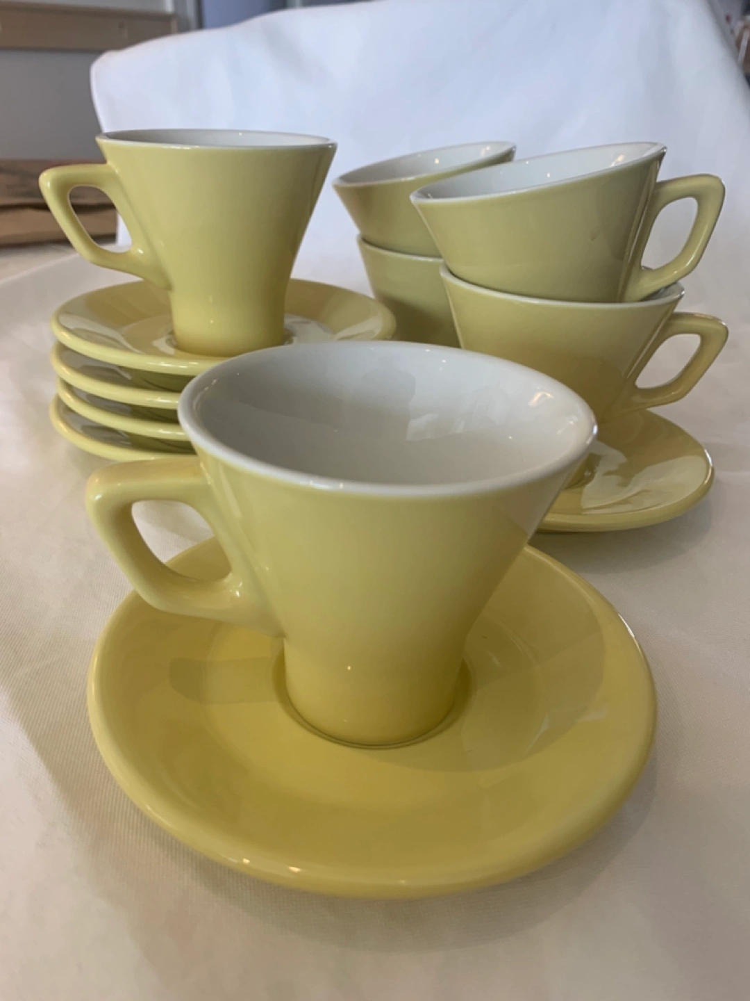 ACF (Special Edition) 6 Citrine Yellow 8oz Barista porcelain cappuccino (cup & saucer) set. Made in Italy, Faema showroom (2008), collectable, never used, cup: 3” height,