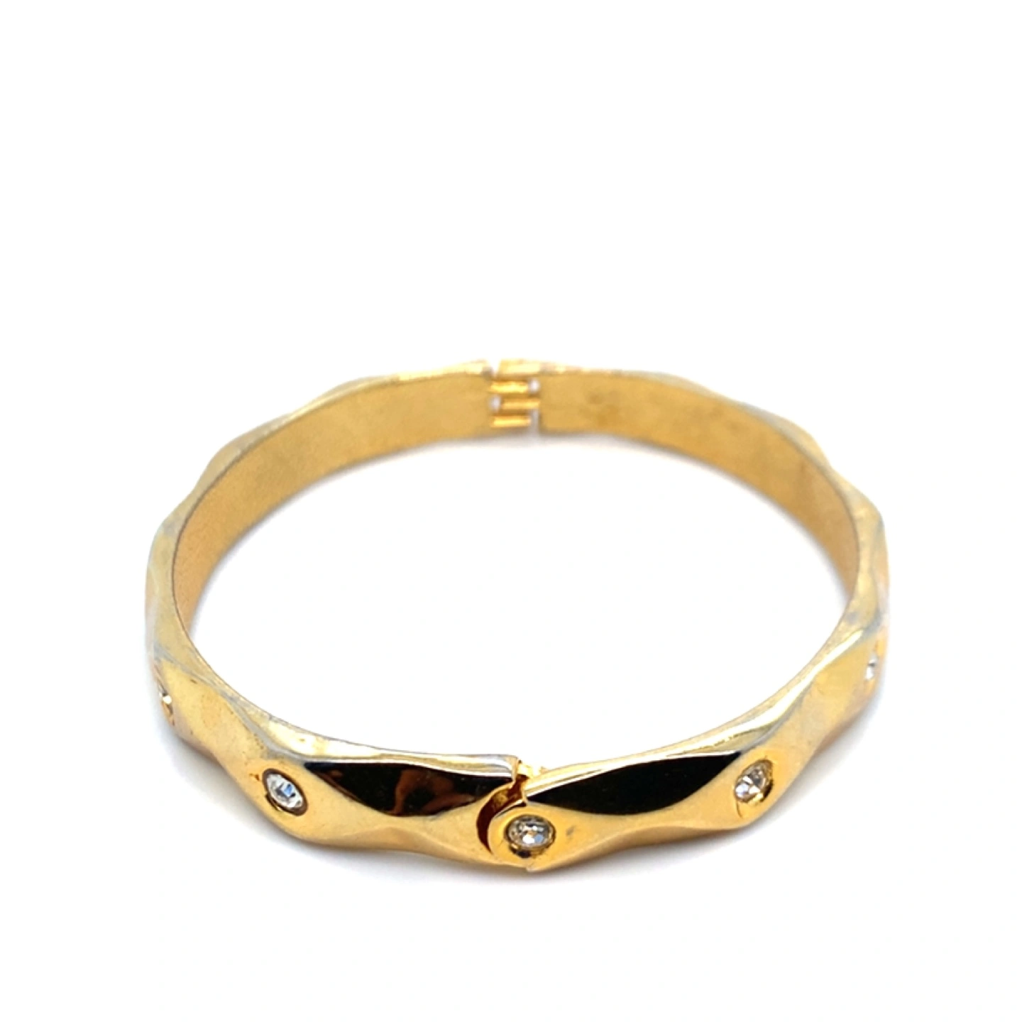 Gold Tone Hinged Bangle with Rhinestones