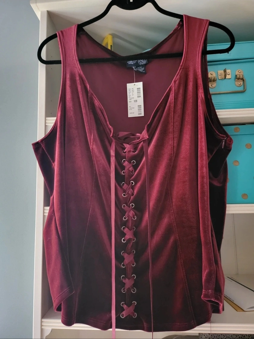stretchy velvet corset style top. Lace-up detail in the front & zipper on one side. Size 18/20.