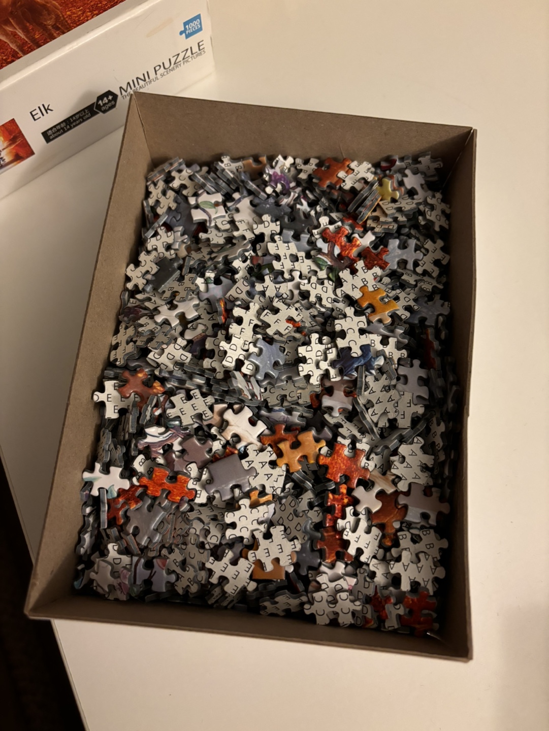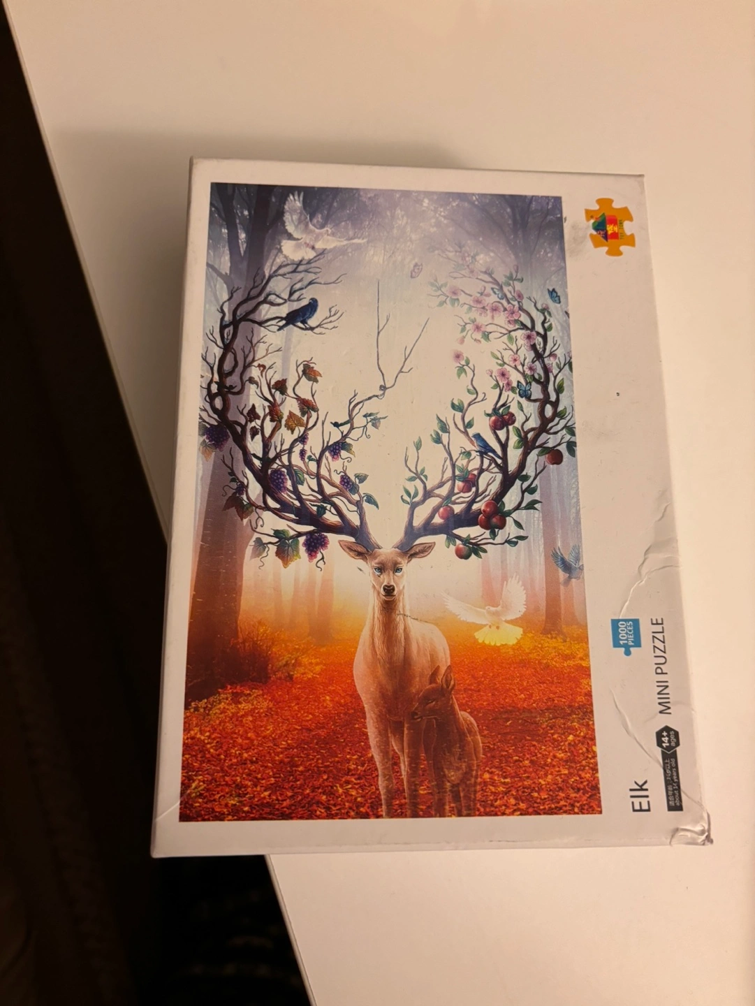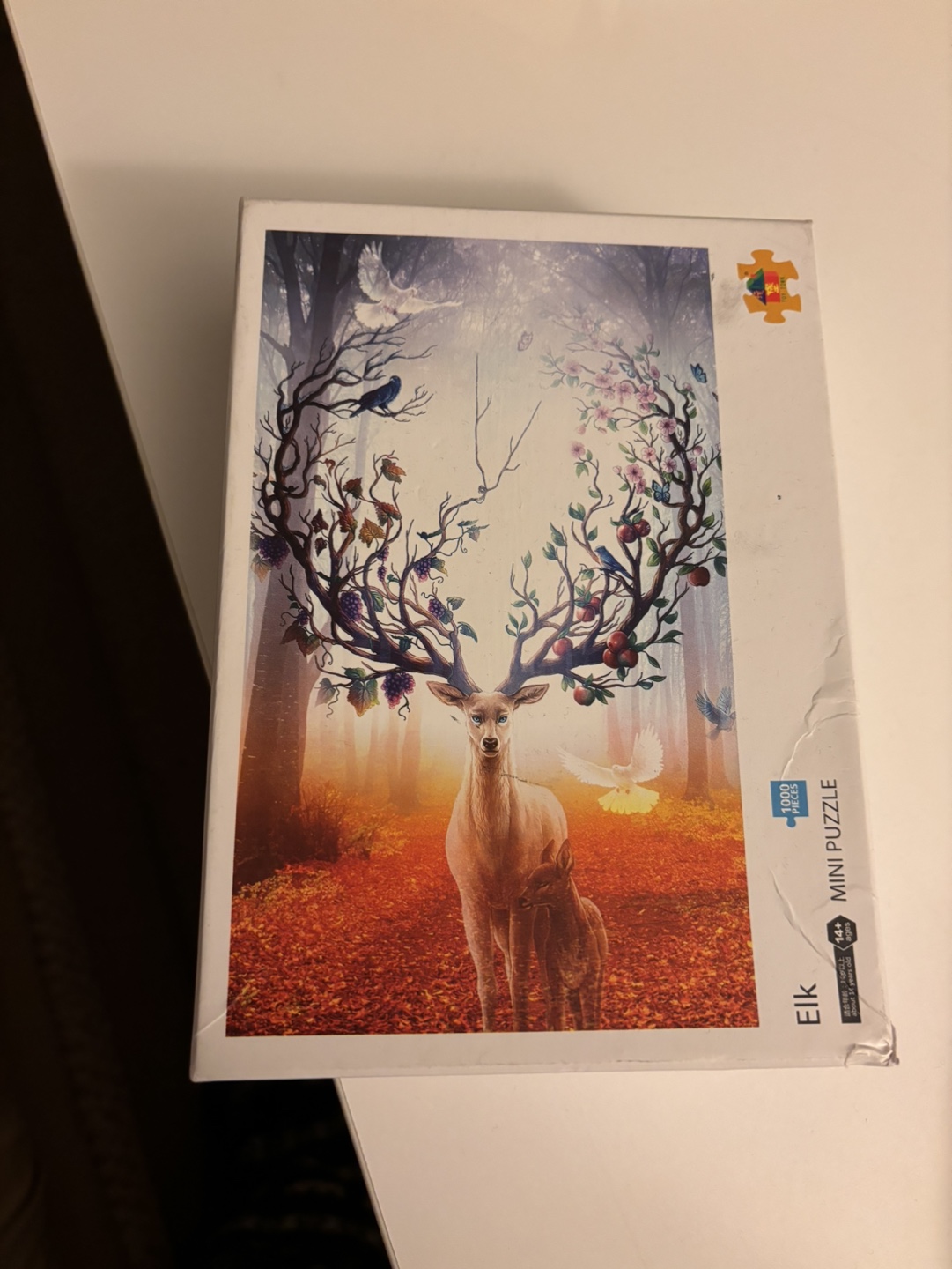 1000 piece puzzle featuring an elk in a forest. All pieces included in original box. Will trade for any 300+ normal size pieces or just take it for free