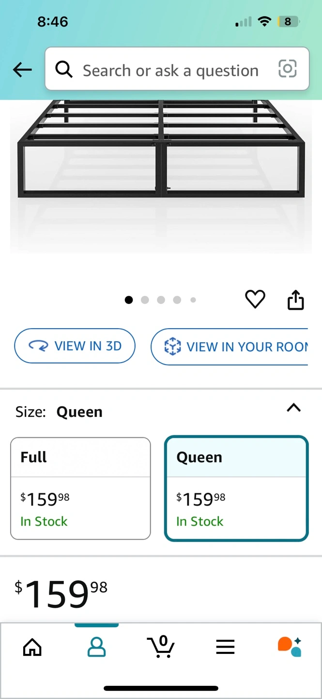 Queen bed frame. Black metal frame. 16-Inches tall. Bought in March 2024 for $160, asking $40! Need gone by Saturday. Pickup near Birchmount/Danforth. Mattress & Headboard not included.