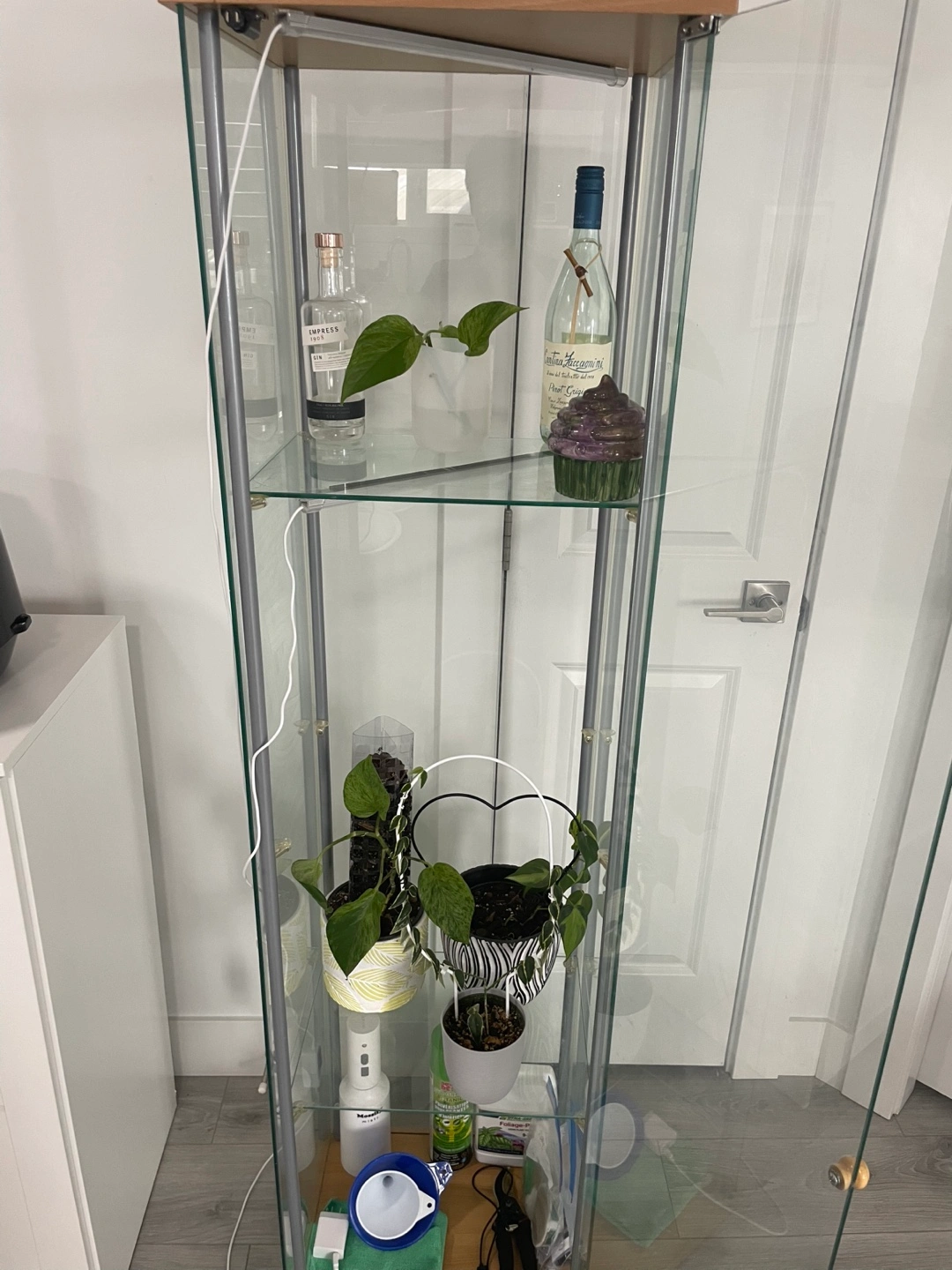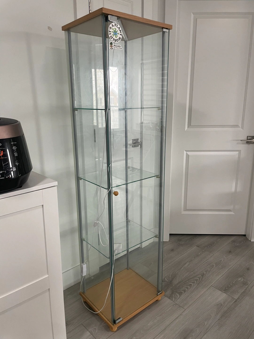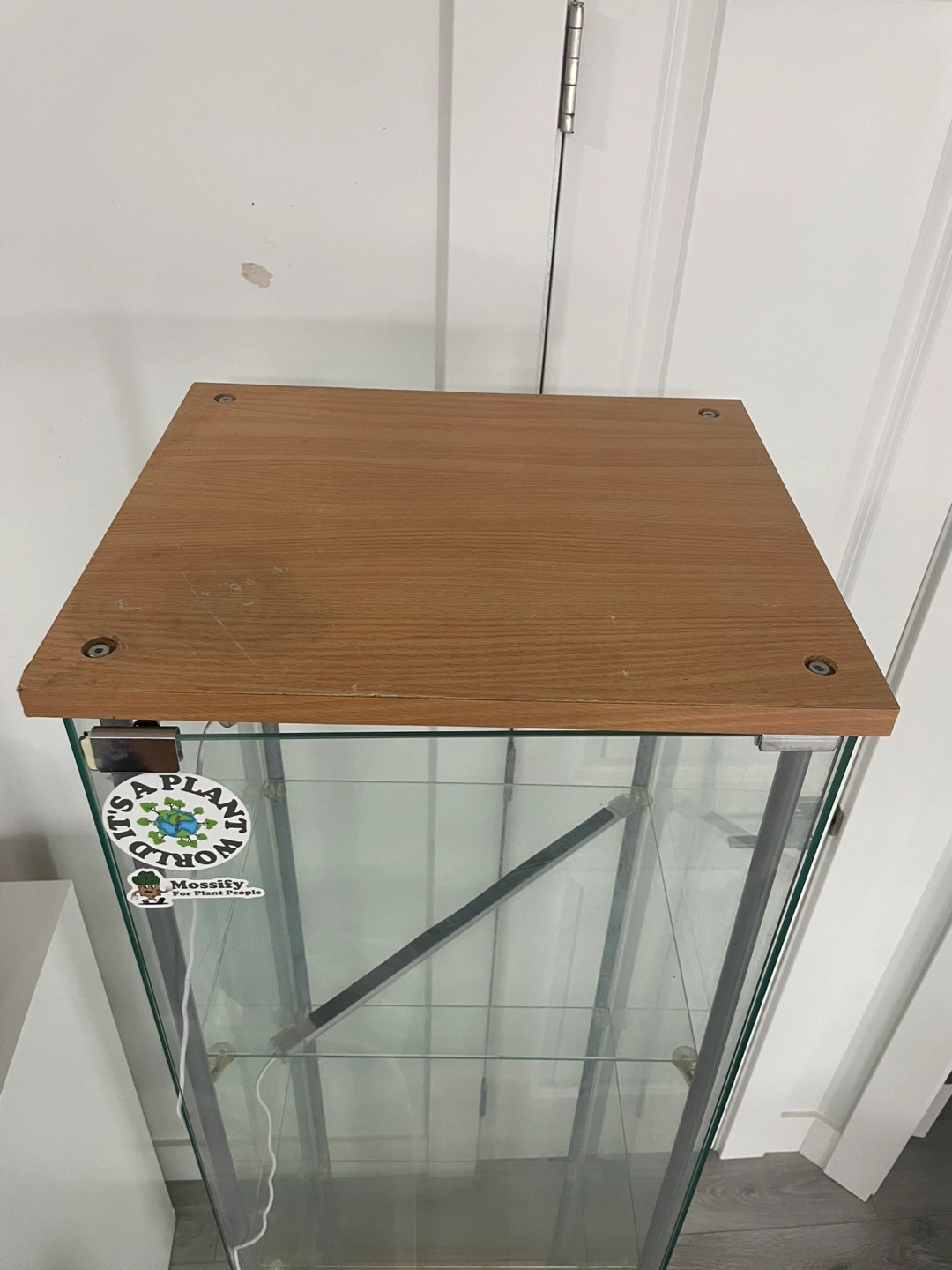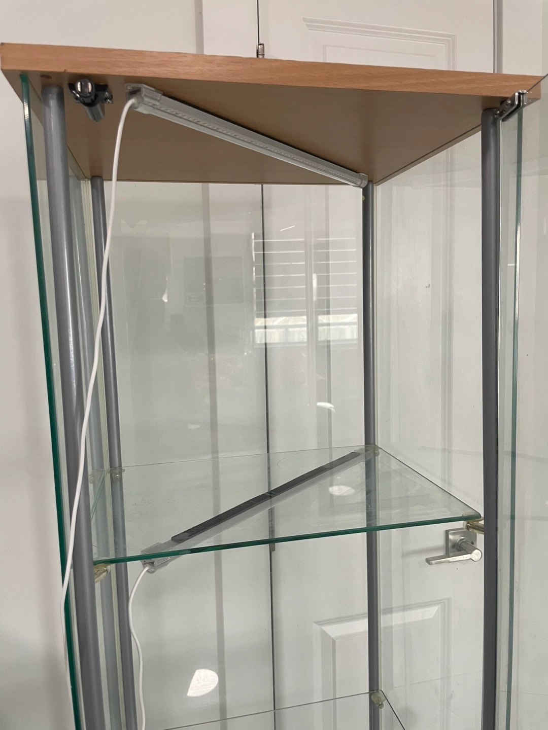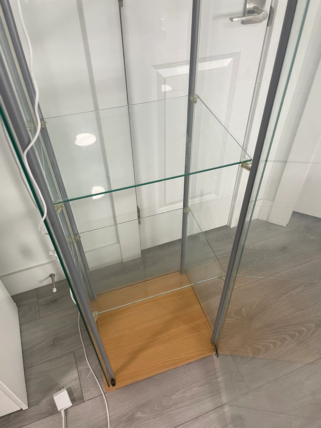 Sturdy glass display shelf, it’s been deep cleaned with lysol wipes and has been nicely take care of 👍