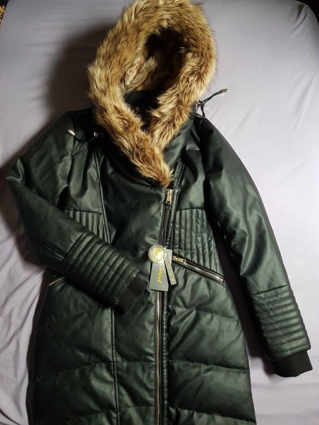 Faux Leather Winter Coat