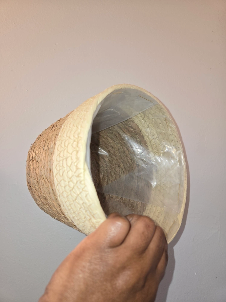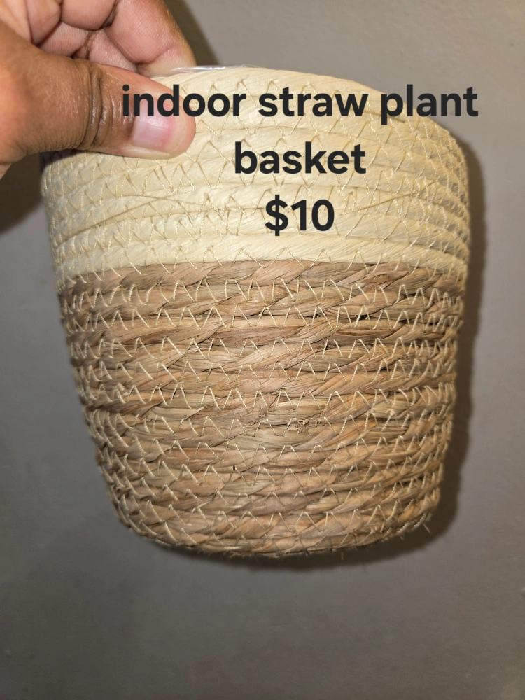 Small woven, straw plant basket with a plastic liner. Great for adding a touch of nature to your home✨️🧺