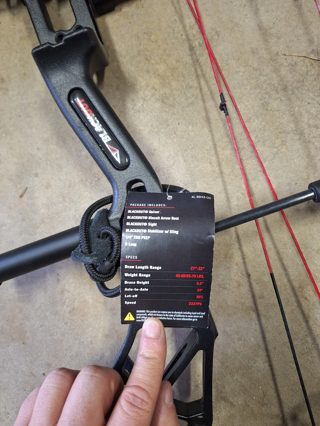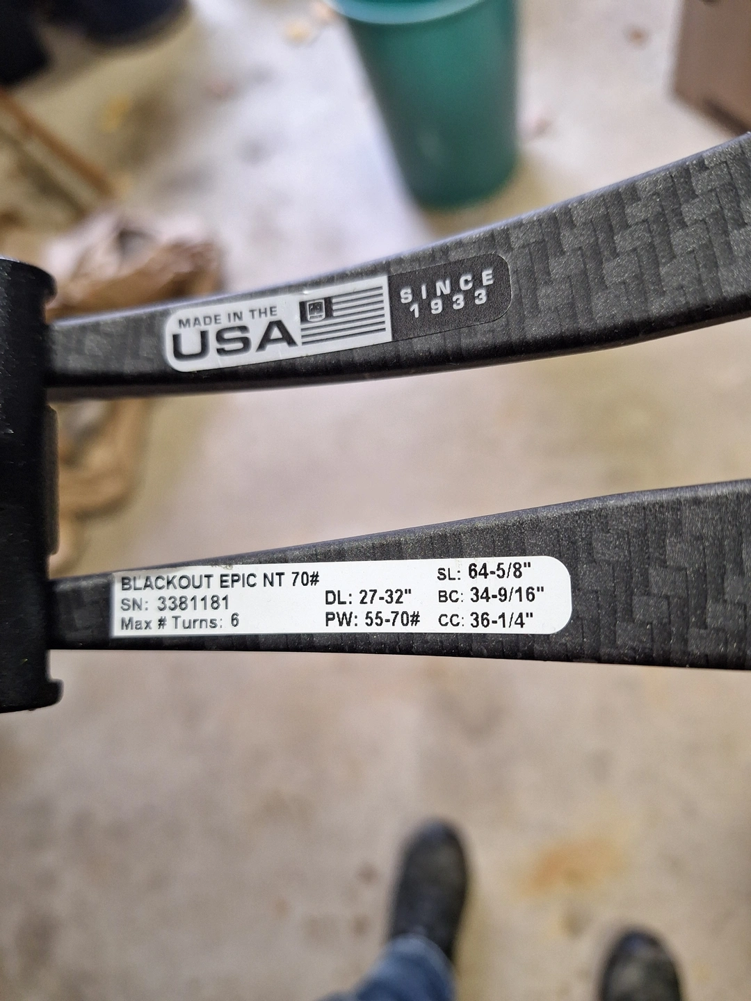 Blackout Epic NT compound bow in excellent condition.This bow is a complete ready-to-shoot setup and includes factory Blackout accessories.Specifications: