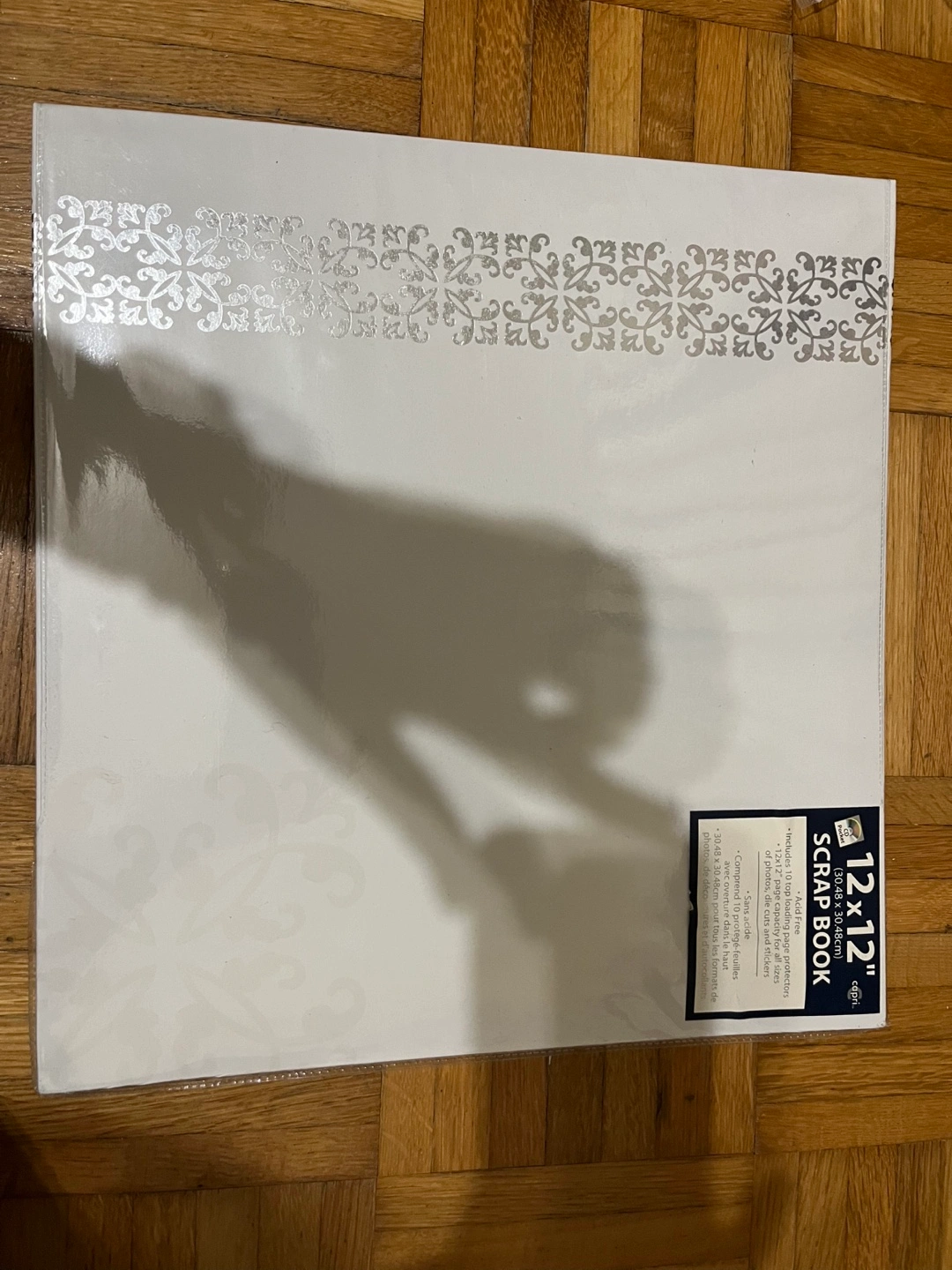 12x12 scrapbook album with silver accents. Unused. Includes 200 pages of acid-free paper. With page protectors