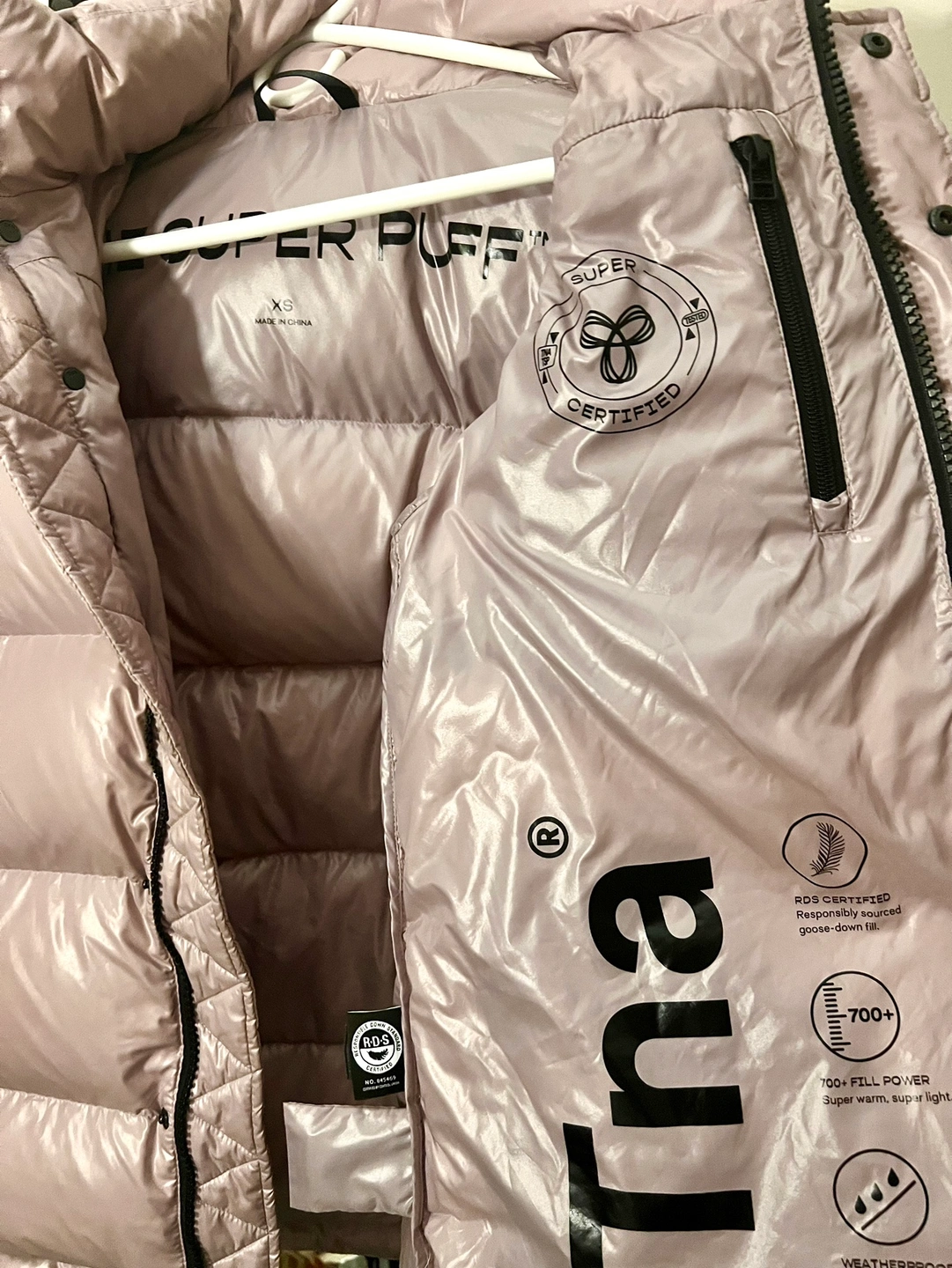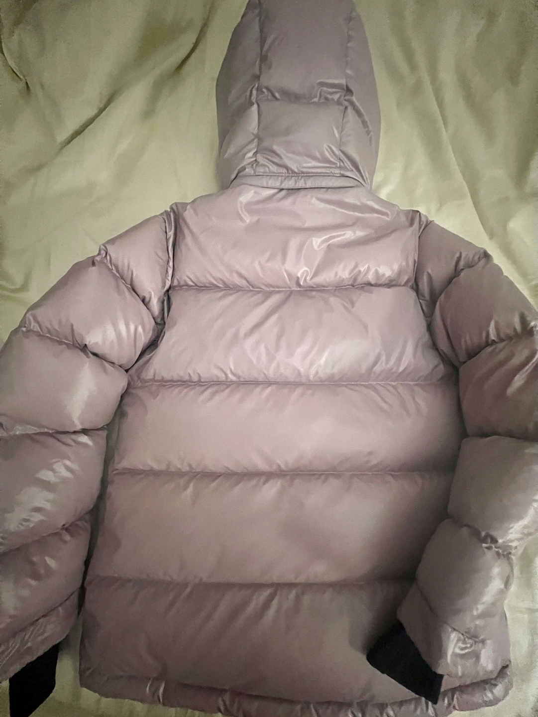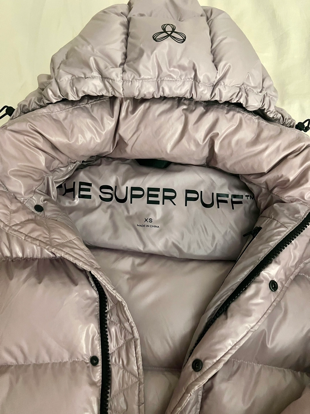 Light Purple Aritzia Super Puff, size XS can fit a small to medium with a removable hood. Mid length. No damage, tears, or discoloration. The pictures are not great. Willing to trade the same brand in a smaller size or cash only. Pick up near Burquitlam