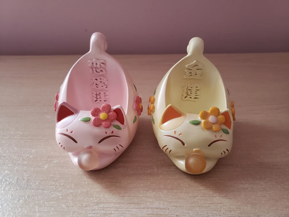 Each cat has a meaning (pink=love/romance, yellow=fortune/wealth)