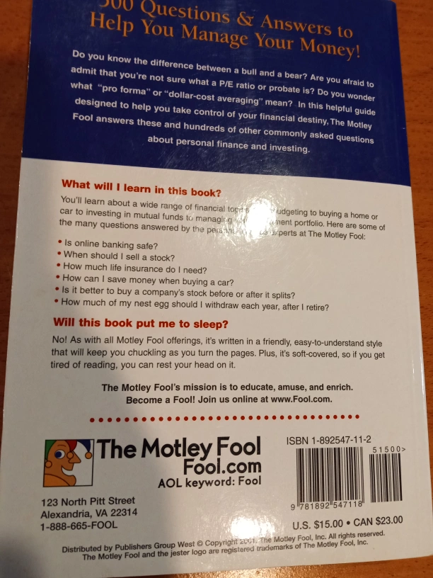 Paperback book with answers to questions about saving, spending, and investing. Foreword by David Gardner. Published by The Motley Fool. Copyright 2001.