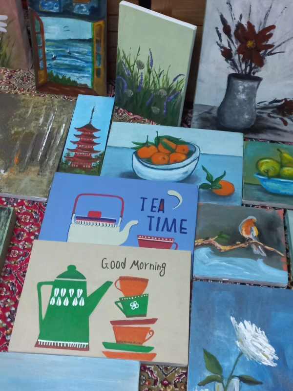 these is handmade and original There are many paintings in different sizes The prices of the paintings range from $35 to $50 I will give you a price for any of them you like.