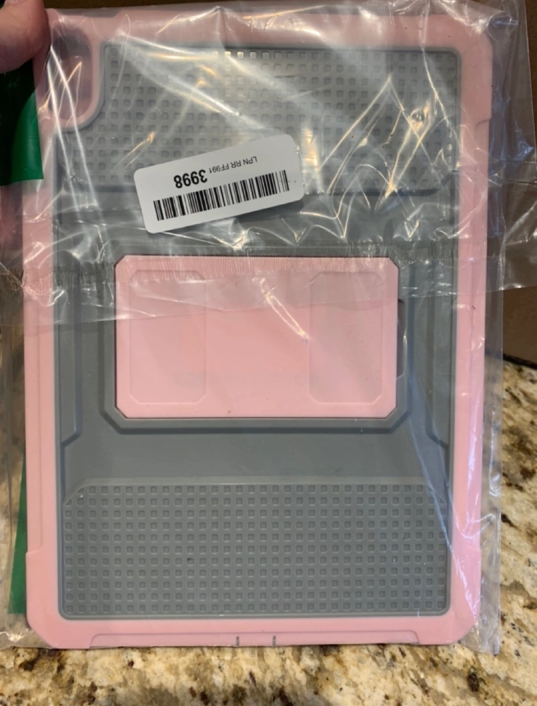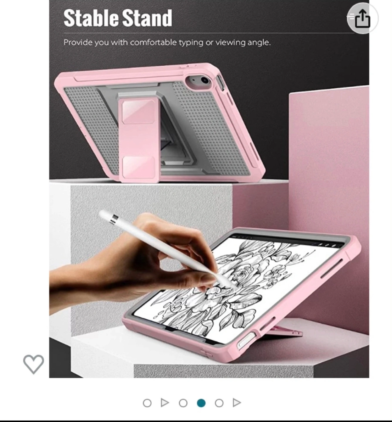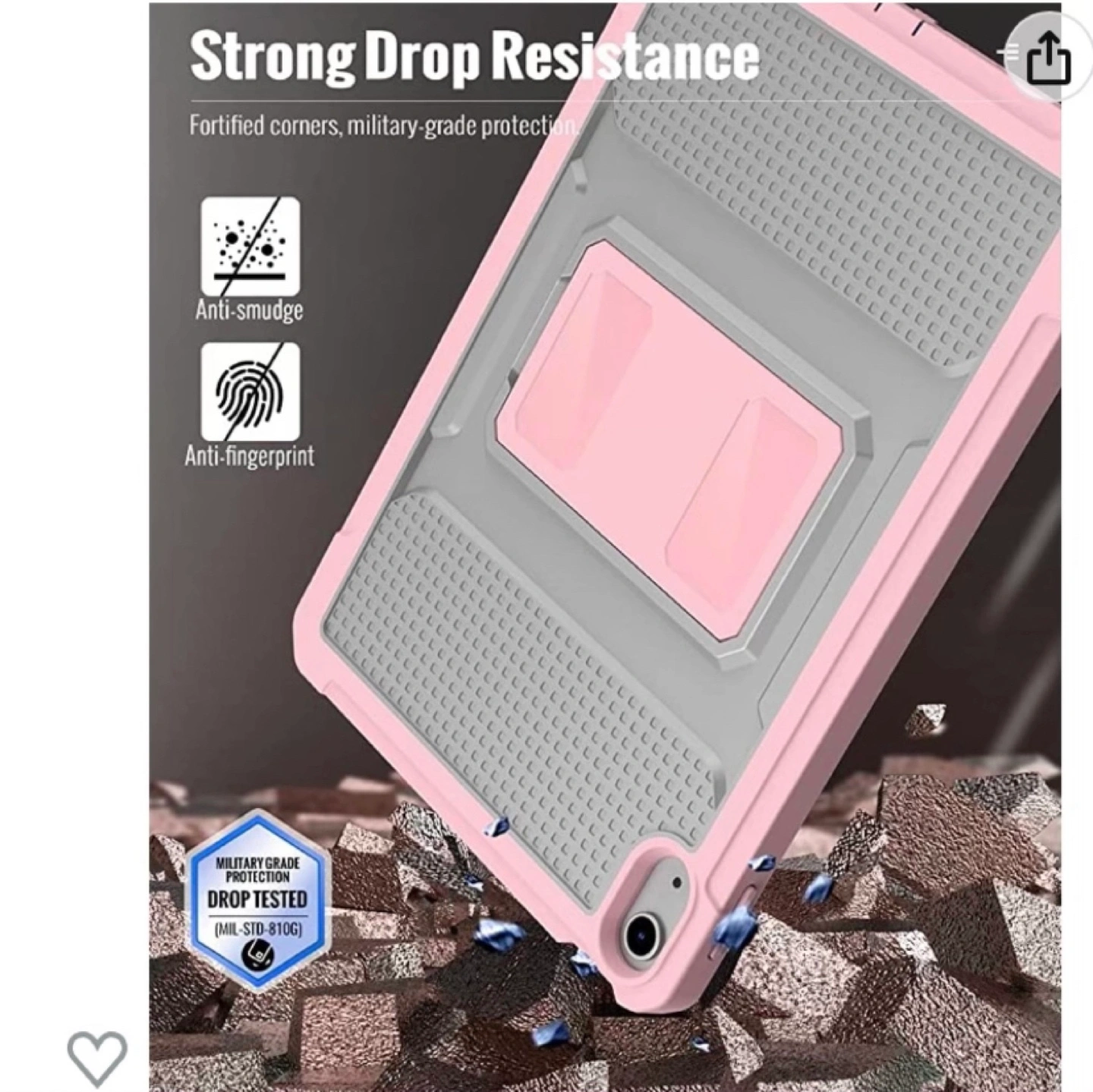 Rugged hybrid protective cover with kickstand and built-in screen protector. Supports touch ID. Gray and pink. For iPad Air 3. Brand new