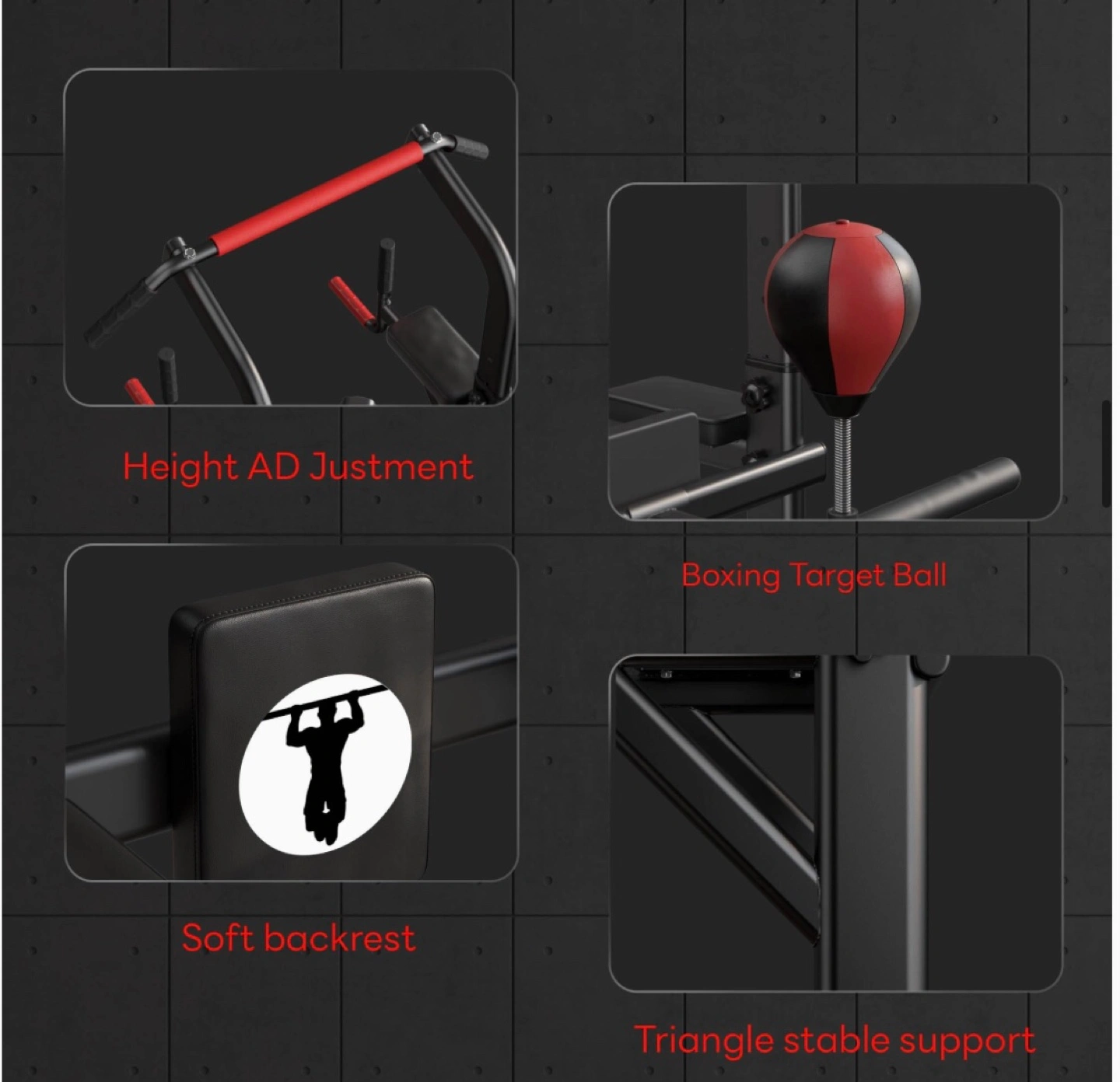This fitness power tower is attached with a boxing speed ball and spinning target, which adds fun to boxing while working out, and is a great stress reliever. Whether at home or in the office, you can enjoy the fun of fitness anytime, anywhere.
