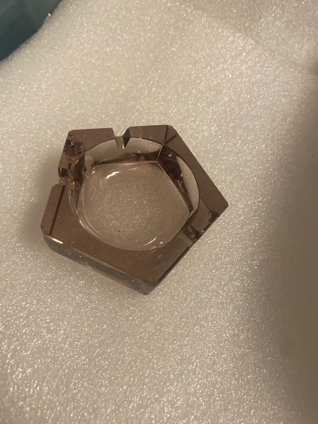 209Glass ashtray. Hexagon shape. Clear with a slight tint of purple.