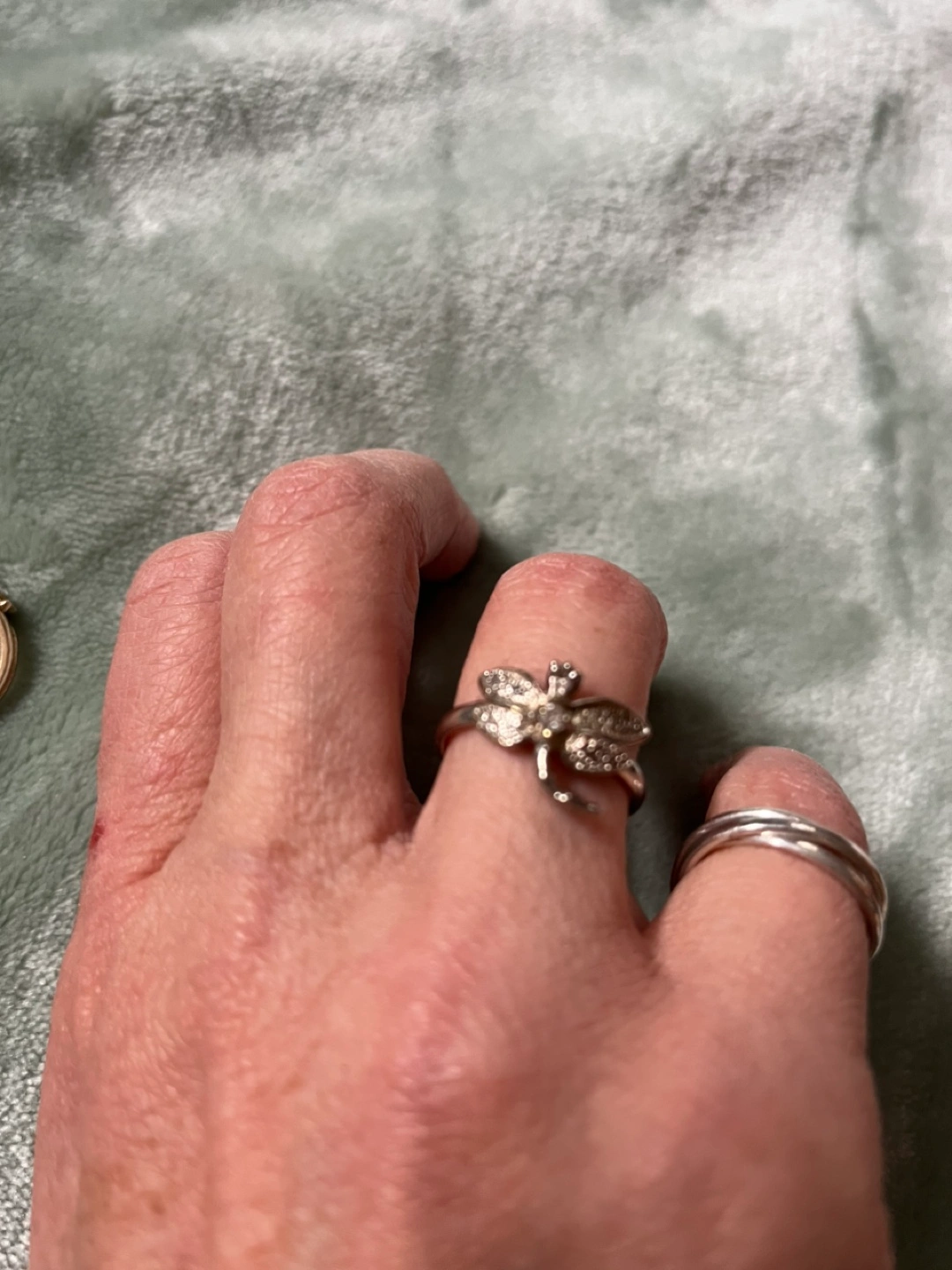 Tiffany dragonfly silver ring size 6.5 $45. Kate Spade silver bow ring size 7.5 price drop as I have noticed it turning a copper colour underneath $20.