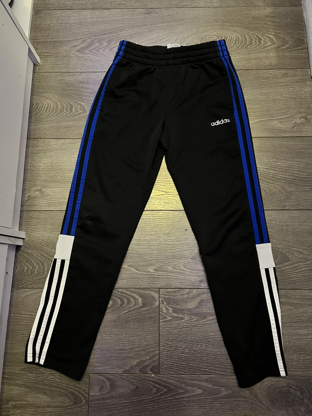Adidas Black Track Pants with Blue & White Stripes #ThriftyPicks