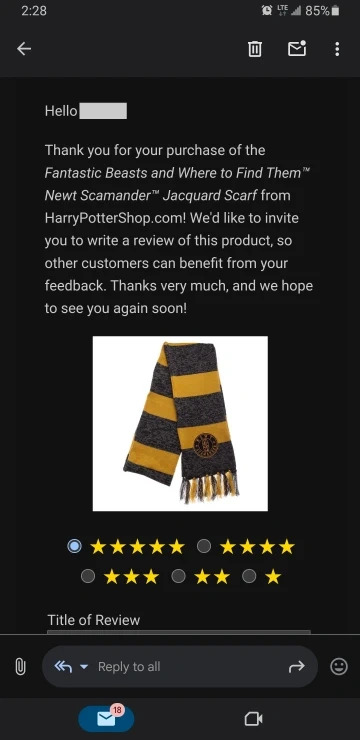 The Harry Potter store no longer sells this version of Newt's scarf so I included a screenshot of the email I got from the store asking for a review
