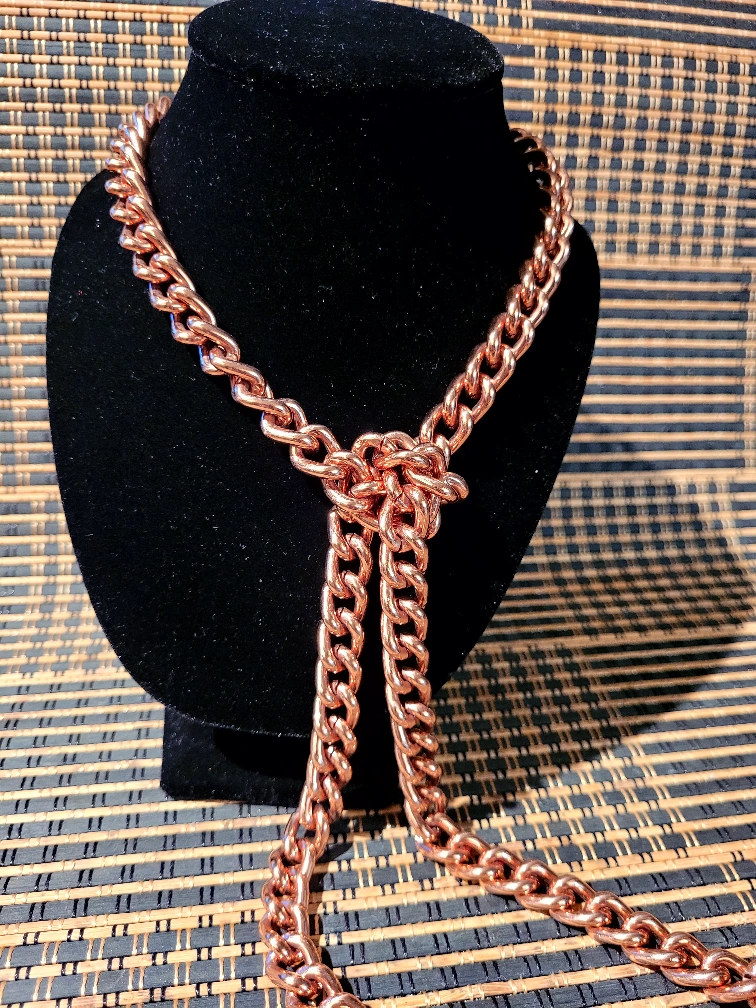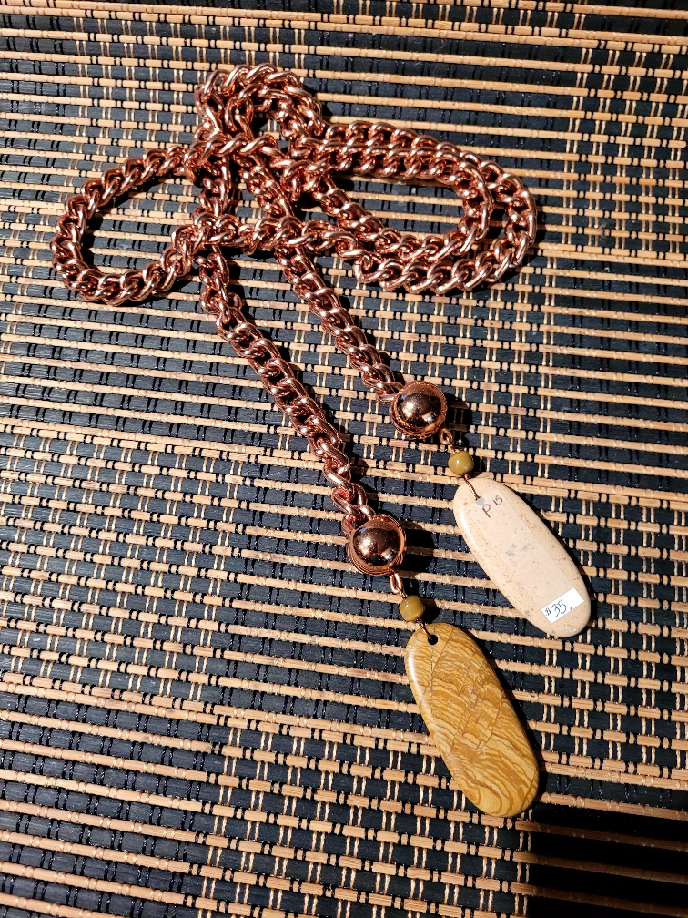 Copper colored heavy chain with natural stone drops. Can be worn as a necklace & adjusted for length OR worn as a decorative belt.