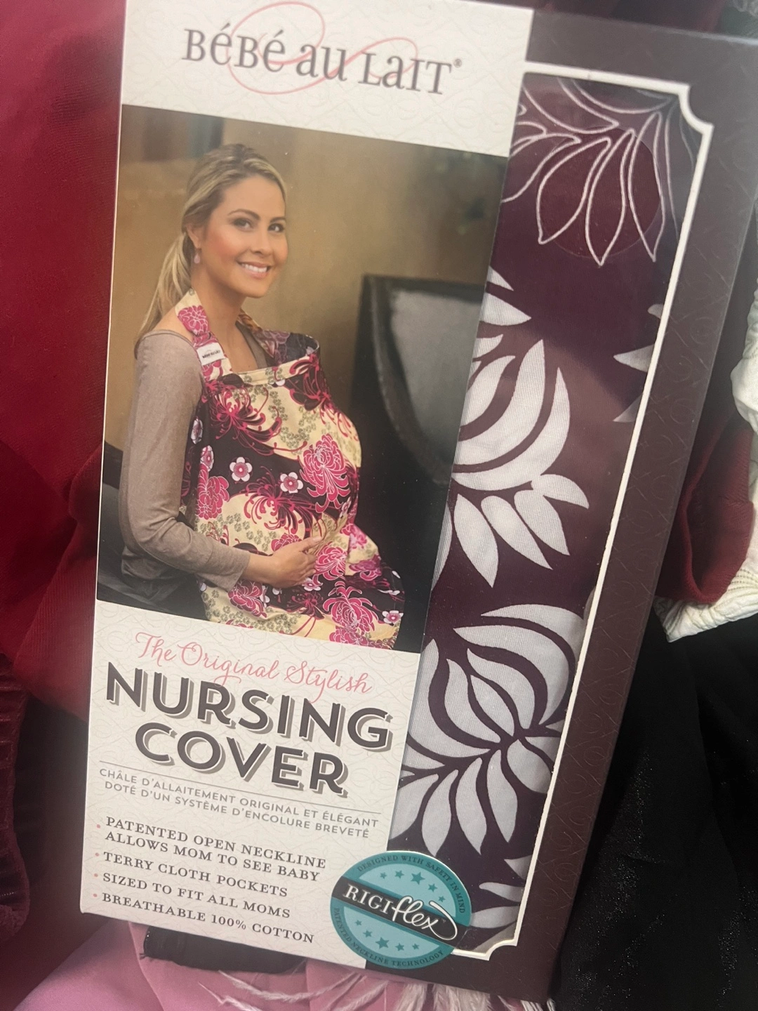 Original stylish nursing cover. Features a patented open neckline to see baby, terry cloth pockets, and is sized to fit all moms. Breathable 100% cotton.