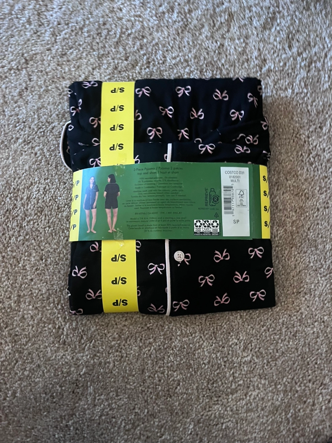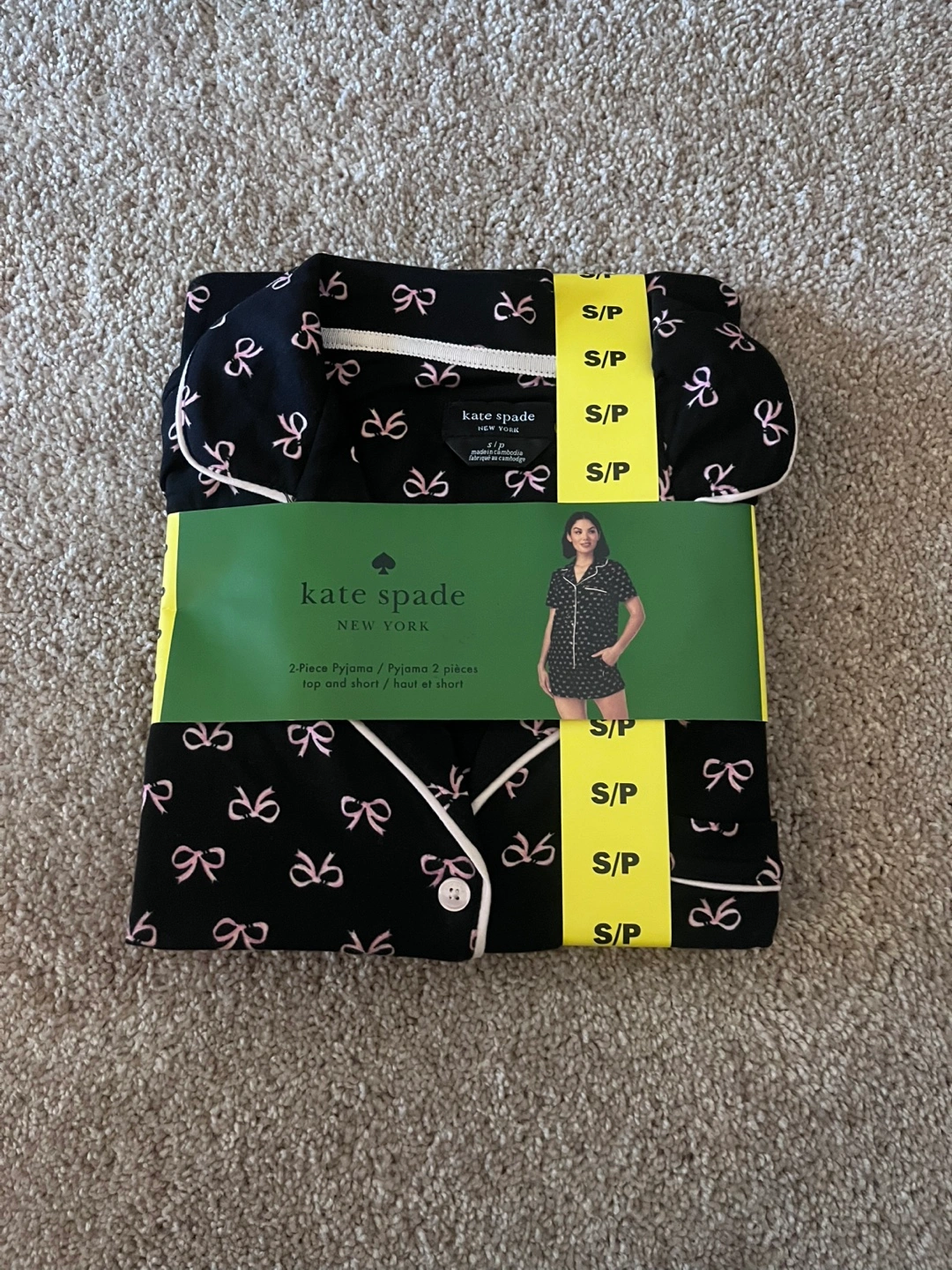 Never worn. Black and pink bow print pajama set. Short sleeves and shorts. Size Small.