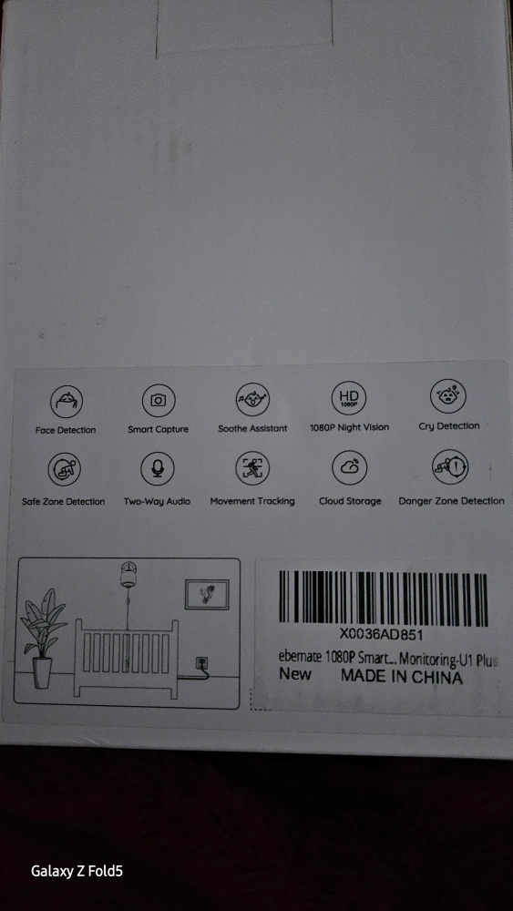 1080P Smart Monitoring-U1 Plus. Features include: Face detection, Smart Capture, Soothe Assistant, HD 1080P night vision, Cry detection, Safe Zone Detection, Two-Way Audio, Movement Tracking, Cloud Storage, Danger Zone Detection.