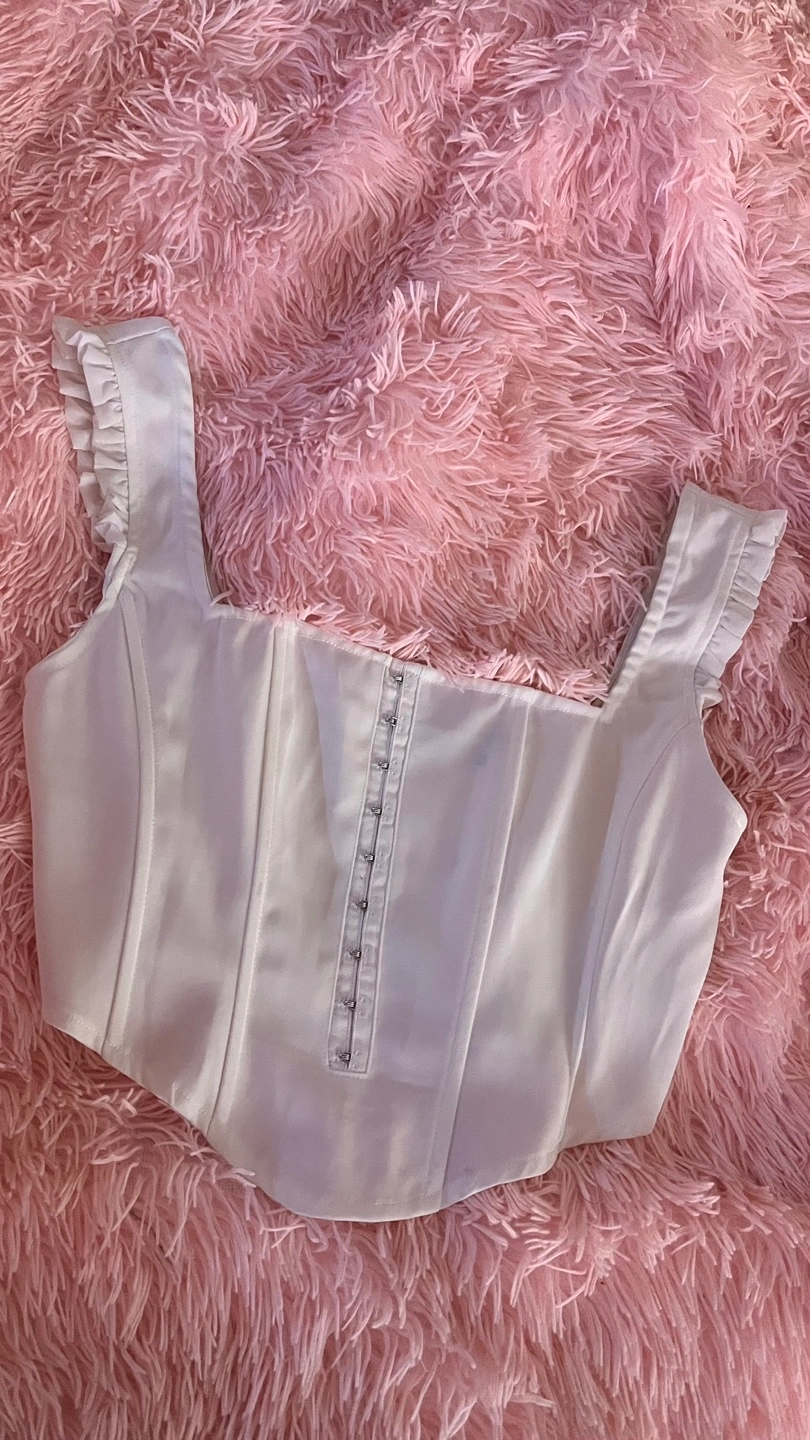 White corset top with ruffles and a zipper closure. Size small. Worn less than a handful of times.