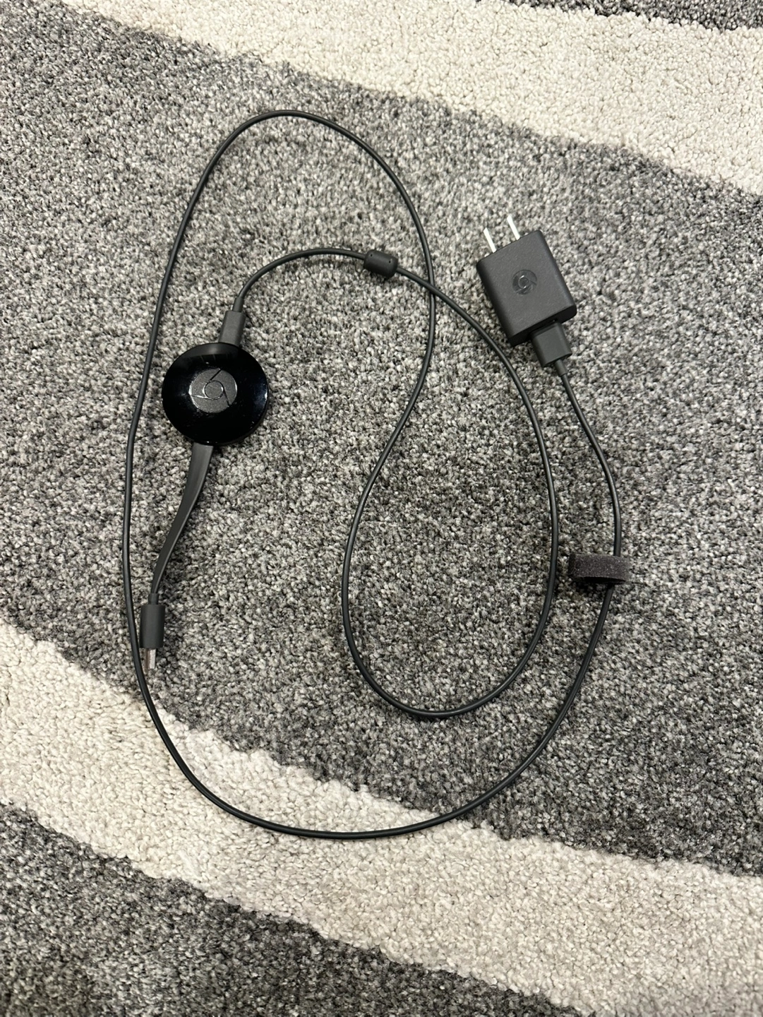 Comes with the remote, tv stand and a chrome cast. Remote has batteries :)