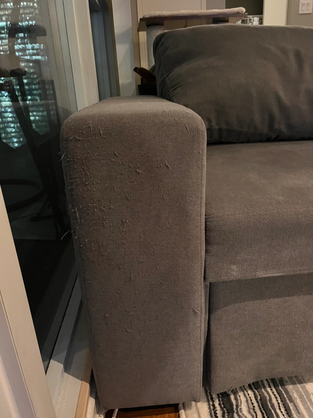There are some scratches from our cat on one side of the couch. Otherwise it’s a great couch - doubles as a bed!