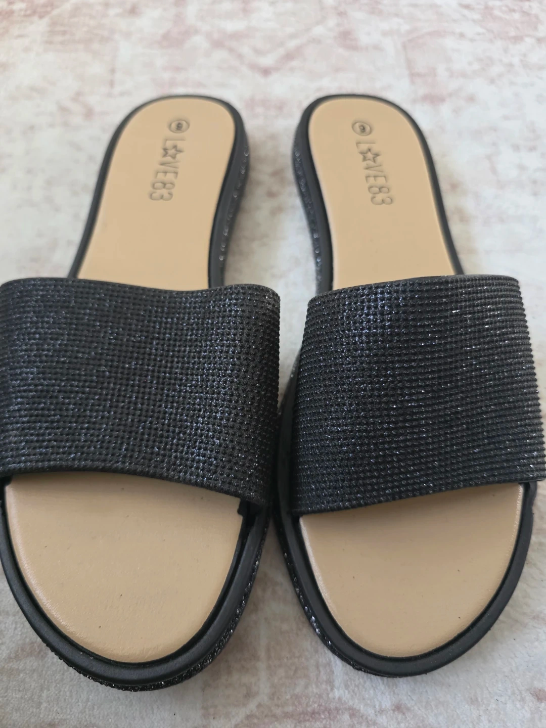 LOVE83 Black Sparkle Slide Sandals Size 9 (USA) / 40 (EUR)