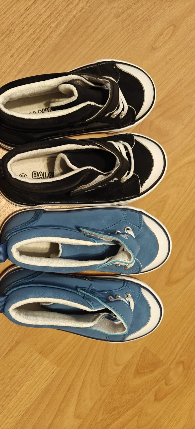 Pair of Balance brand kids shoes. Comes in black and blue colours. Features hook and loop fasteners and laces. Size 26 on the black pair. Size 28 on blue pair. $10 for each and $15 if buying both
