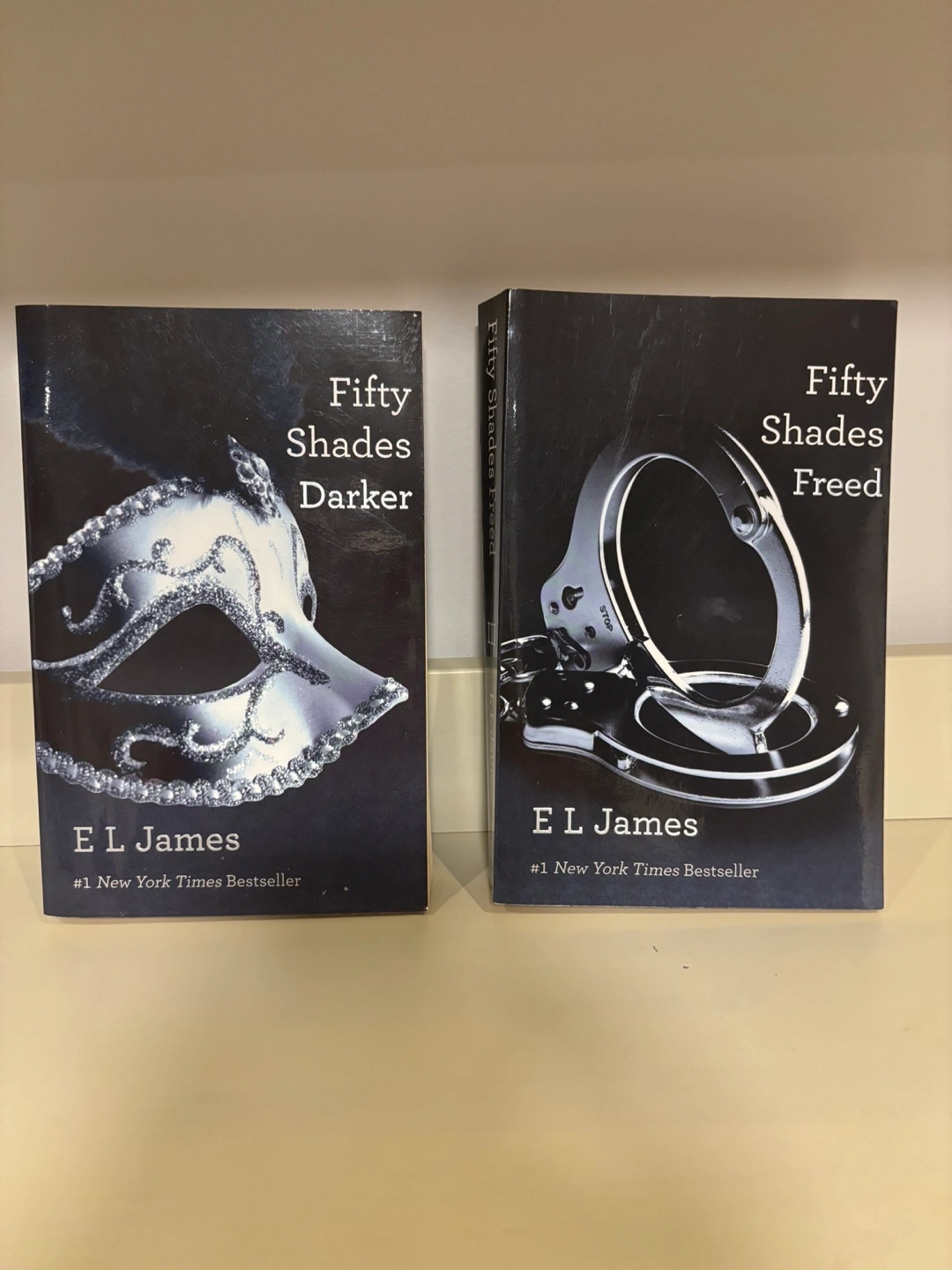 Fifty Shades Darker and Fifty Shades Freed by E L James.