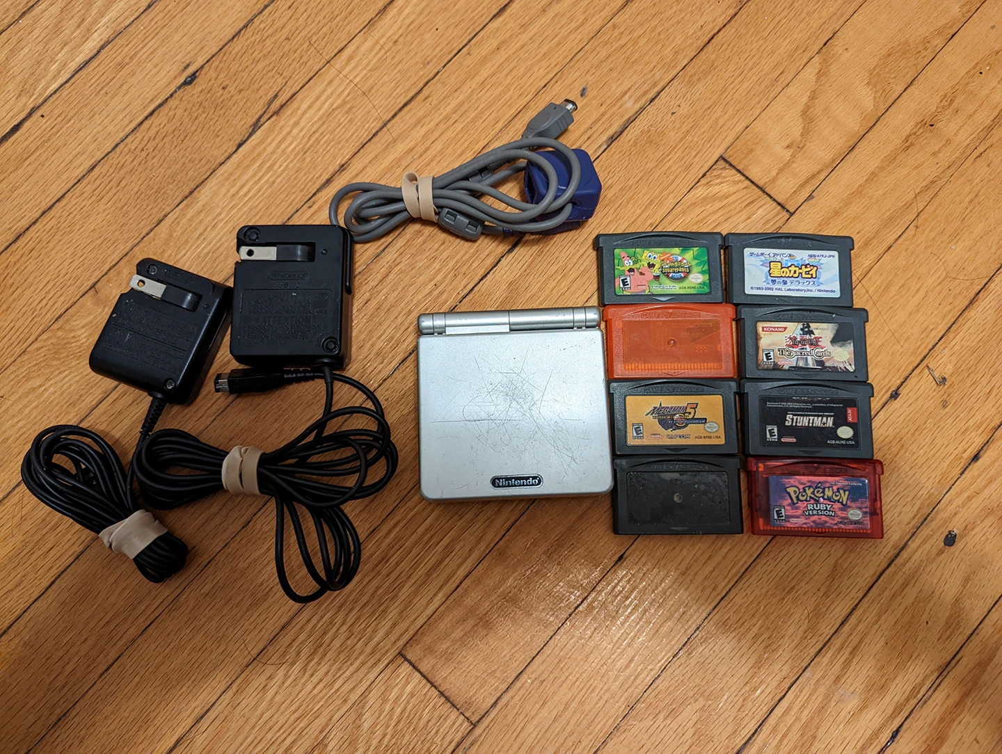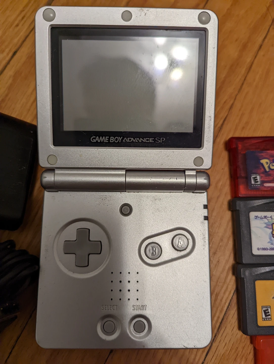 Gameboy SP -alot of scratches on the top but screen and inside is relatively clean.