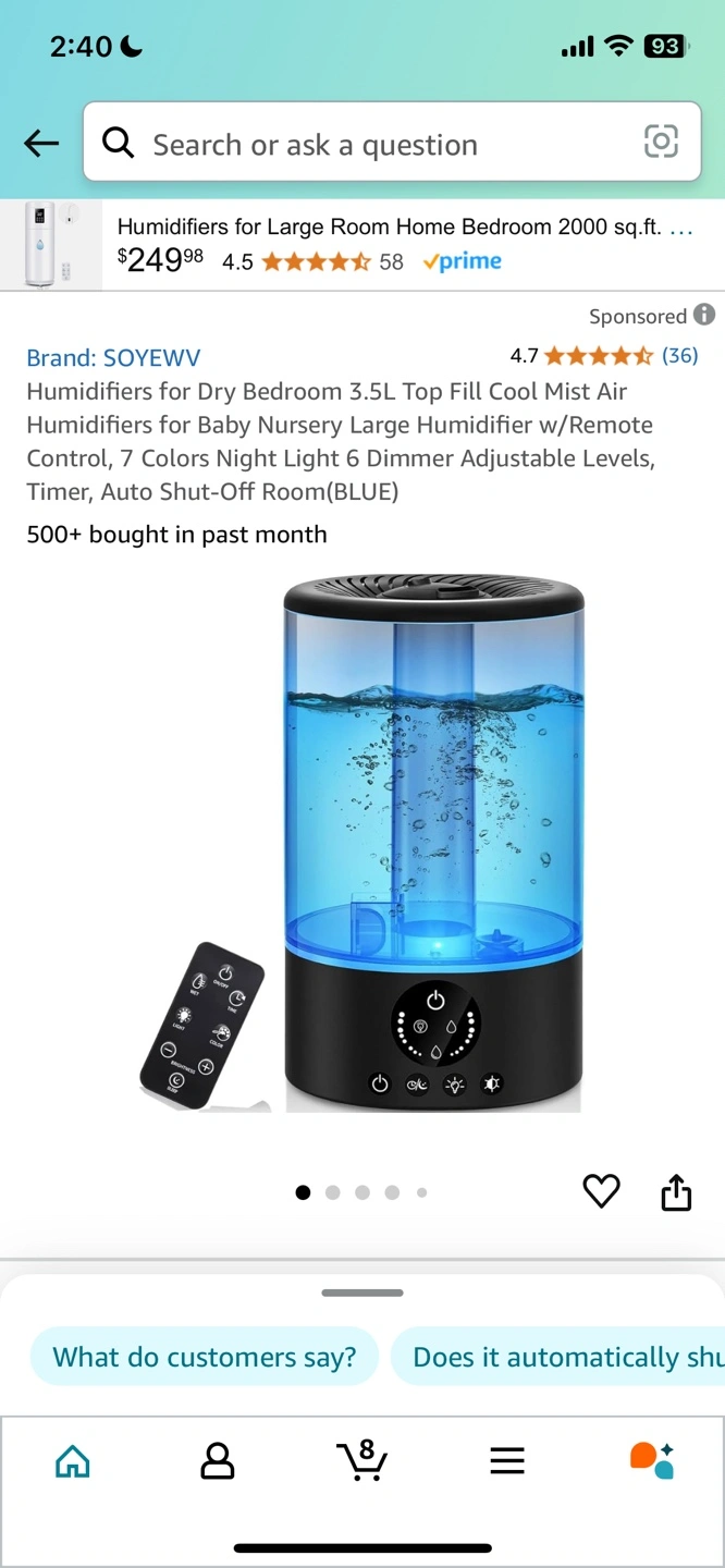 Buy & SellSOYEWV 3.5L Top Fill Cool Mist Air HumidifierSOYEWV 3.5L Top Fill Cool Mist Air Humidifier$30Humidifier for dry bedroom. Includes remote control, 7 colour night light, 6 dimmer levels, timer and auto shut off. BNIB.ConditionNewBrandSOYEWVWHERE TO MEETCheck LocationView MapSELLERverifiedStephanieBlake Jones1457 reviews2 chats·1 favorites·43 viewsSEND CHAT TO SELLERHi Stephanie! I’m interested in your listing.Hi Stephanie! I’m interested in your listing.Get the Karrot app to chatSign In to chat