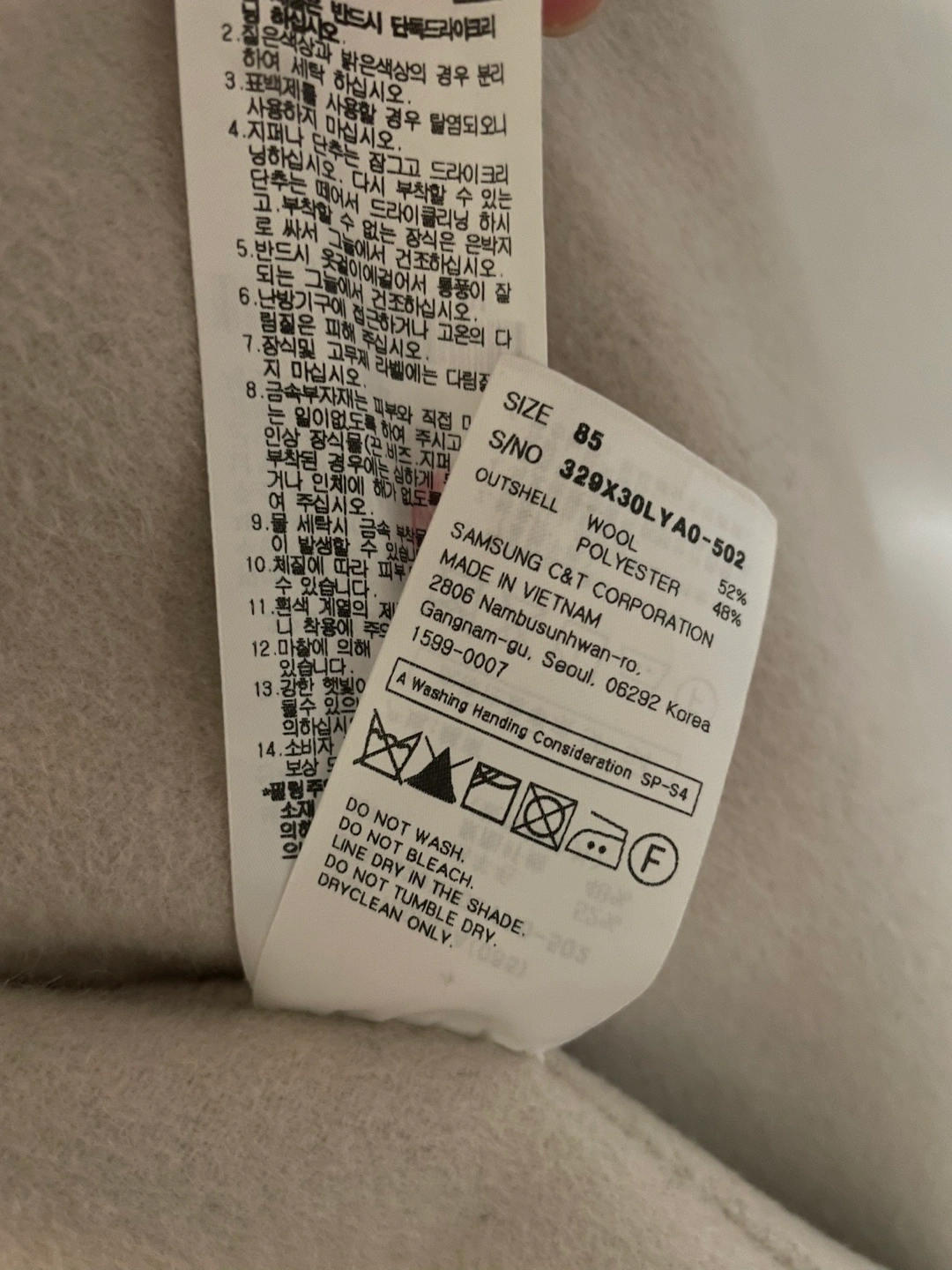 52% wool, 48% Polyester.