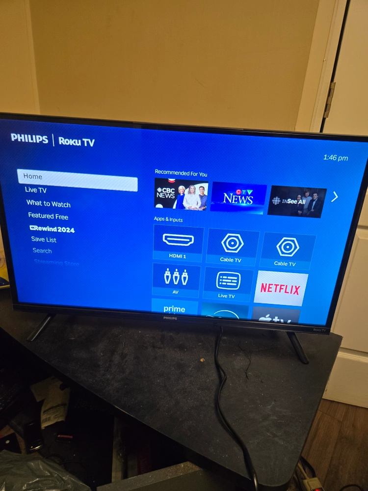 Smart TV with Roku built in. Features a built in streaming store with Netflix and Prime Video.