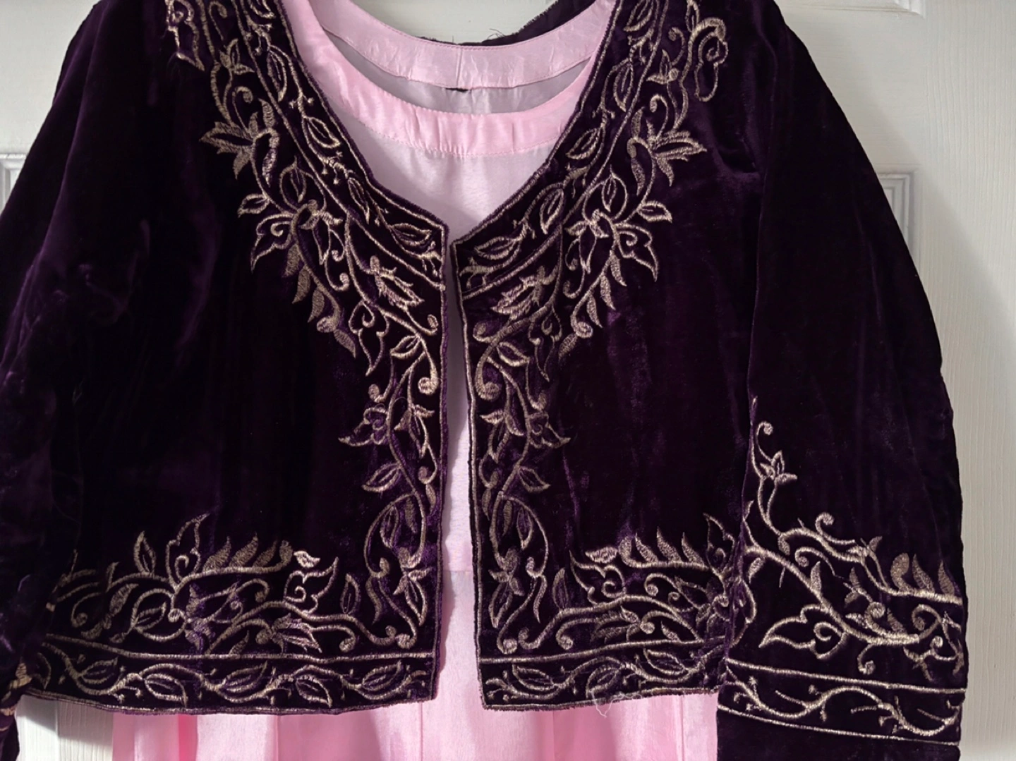 Velvet with gold embroidery top vest . Pink/ purple dress separate with a light, very flowing material