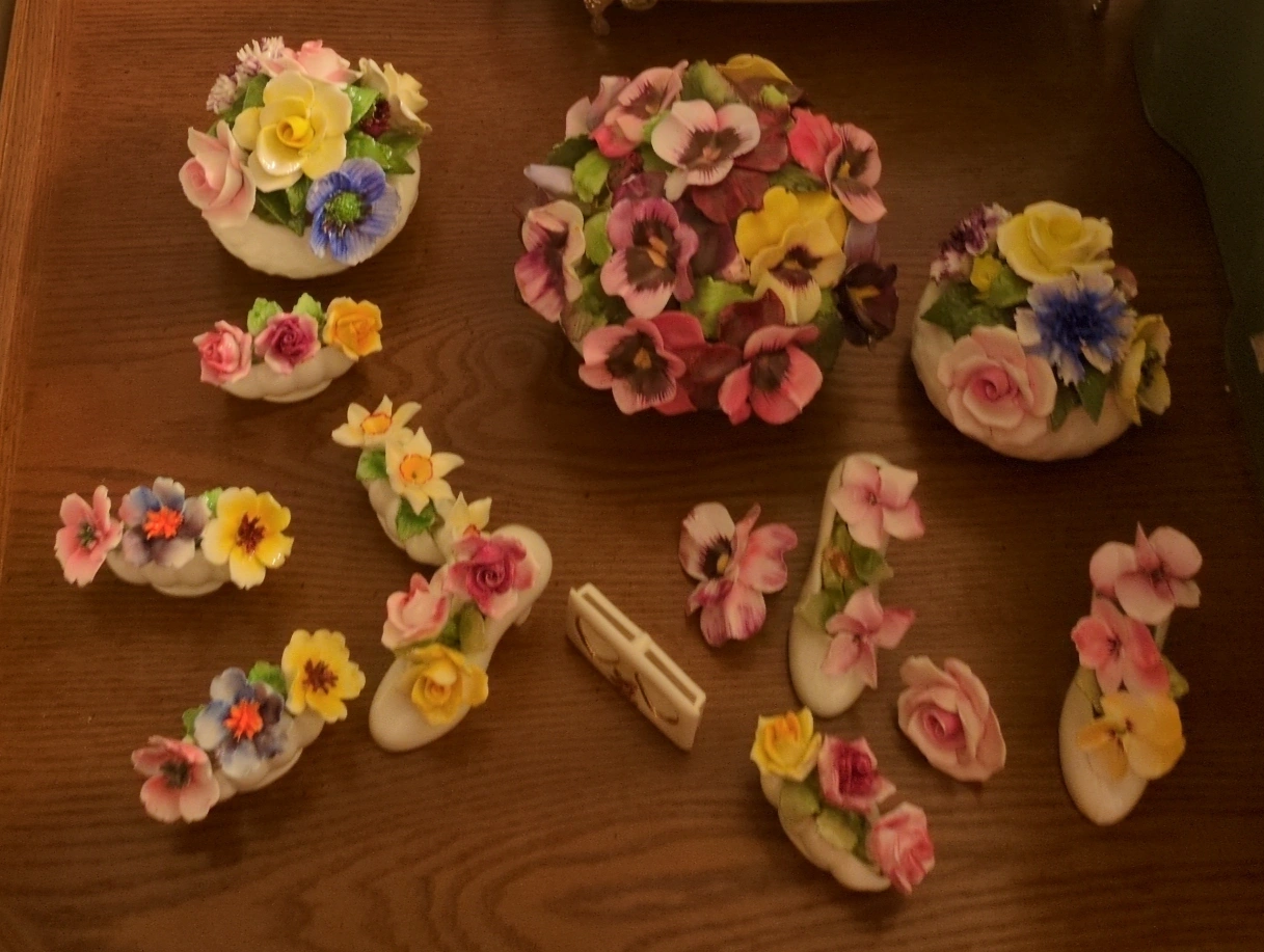Royal Doulton porcelain figurines. Various floral designs. Some are shaped like shoes and others are in a small bowl shape. pick up in markham