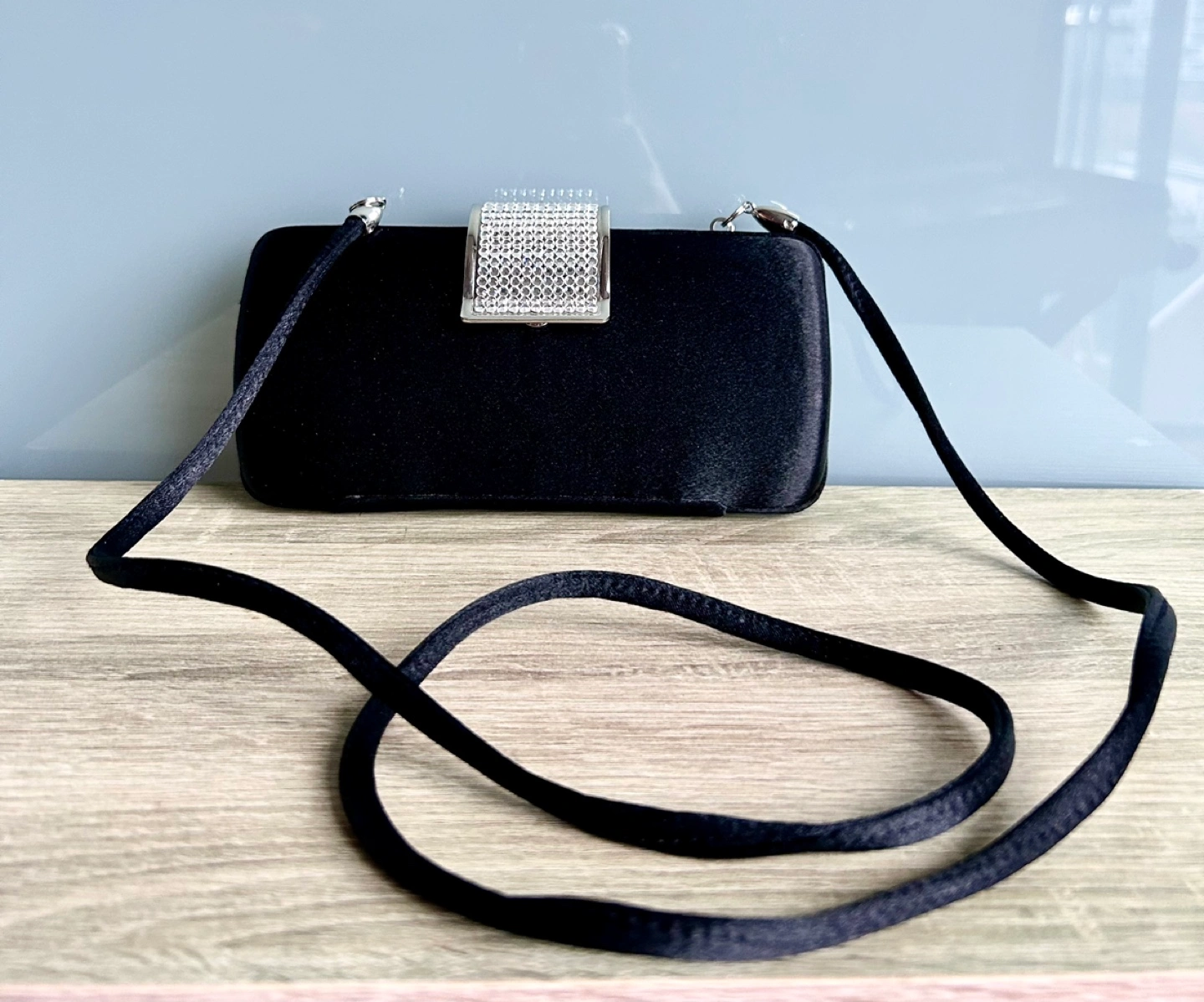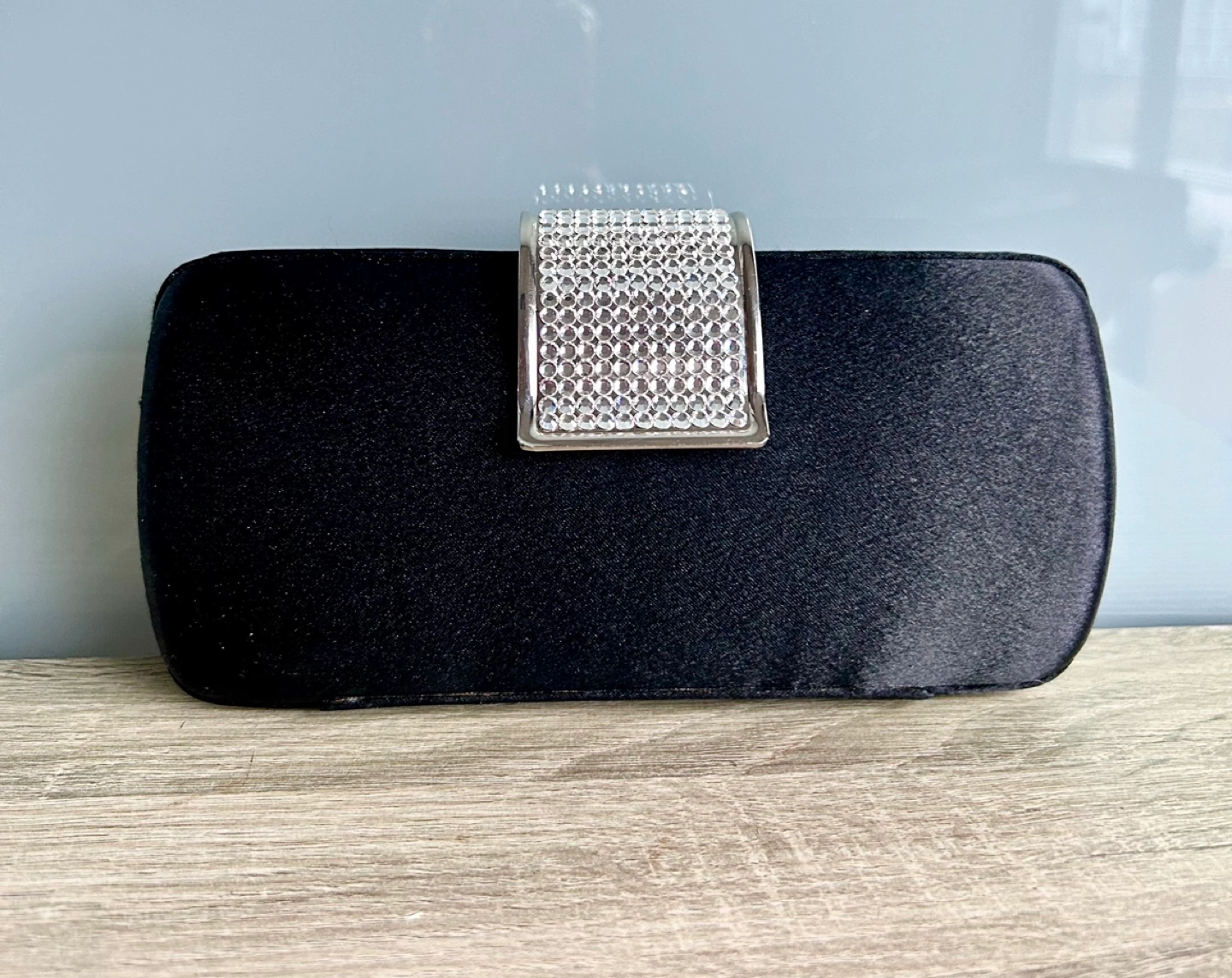 Black Satin & Crystal Evening Clutch