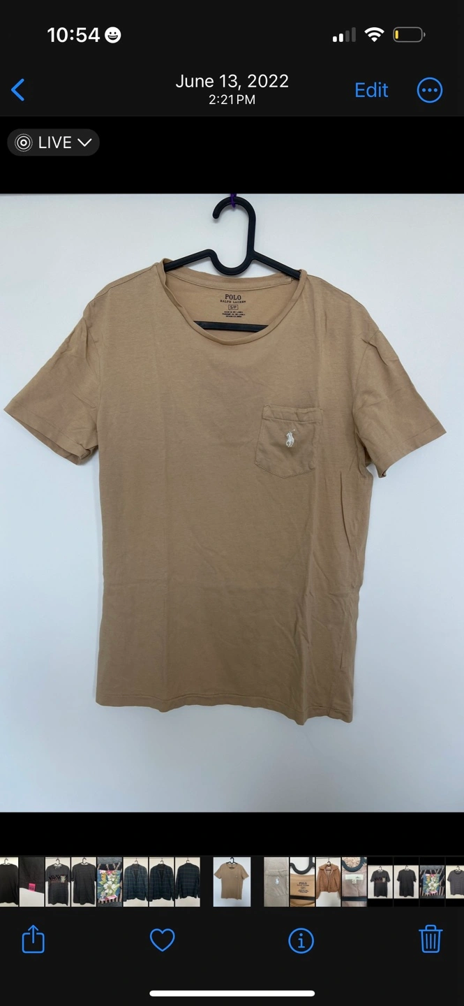 246Tan short-sleeved t-shirt with a small pocket on the left side. Size S/P.