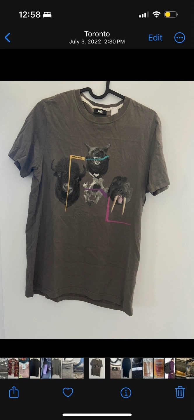 246Grey short sleeve t-shirt with graphic design featuring various animals. Size M. Worn once .