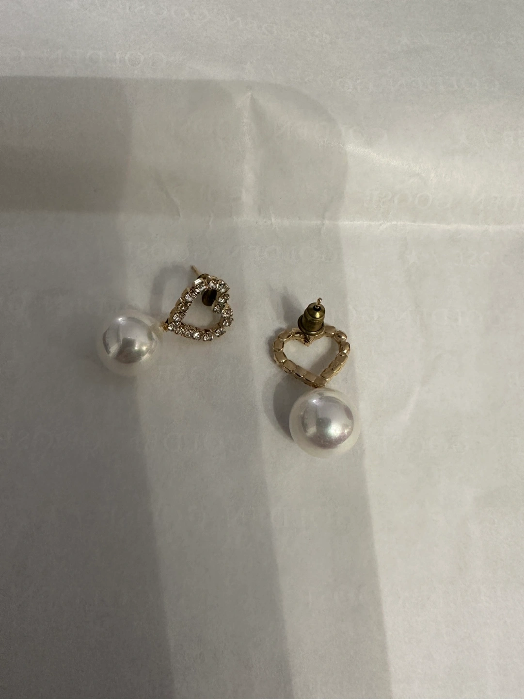 -one pair of gold heart and pearl earring/ no brand