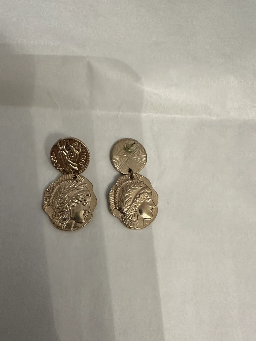 -one pair of gold jewelry coin earrings/ no brand