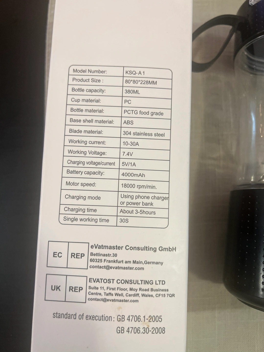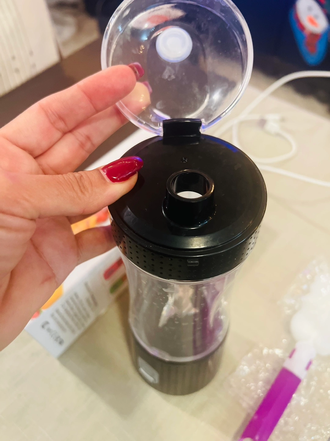 Never used with box and accessories. Black portable blender with a clear container, includes a charging cable, a cleaning brush, and the original box. Great for smoothies on the go. Cash and pick up only Promenade Mall, Check my other listings for a bundle. Thx
