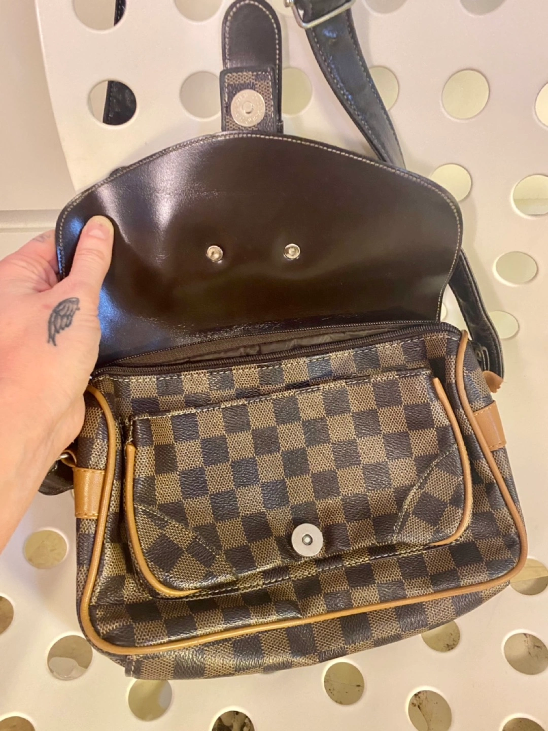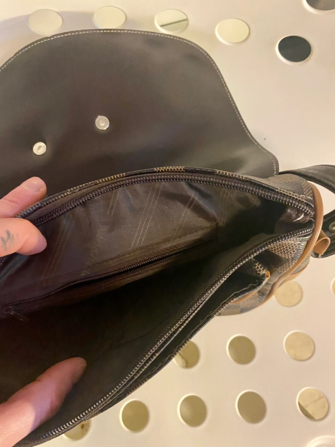 I am selling my brown one strap adjustable purse , had 1 front pocket , 1 zipper pocket inside and 1 zipper pocket facing the body .
